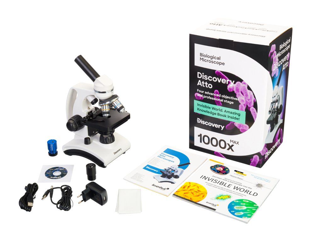Digitálny mikroskop Discovery Atto Polar je biologický svetelný mikroskop s 5 Mpix digitálnym fotoaparátom. Dá sa použiť na vizuálne pozorovania mikrosvetu aj na uloženie obrázkov mikroskopických preparátov vo formáte fotografií alebo videa. Mikroskop ponúka zväčšenie v rozsahu od 40x do 1000x, umožňuje študovať vzorky akéhokoľvek stupňa priehľadnosti a dokonca použiť metódu olejovej imerzie pri výskume. Súčasťou balenia je poučná kniha o mikrosvete.