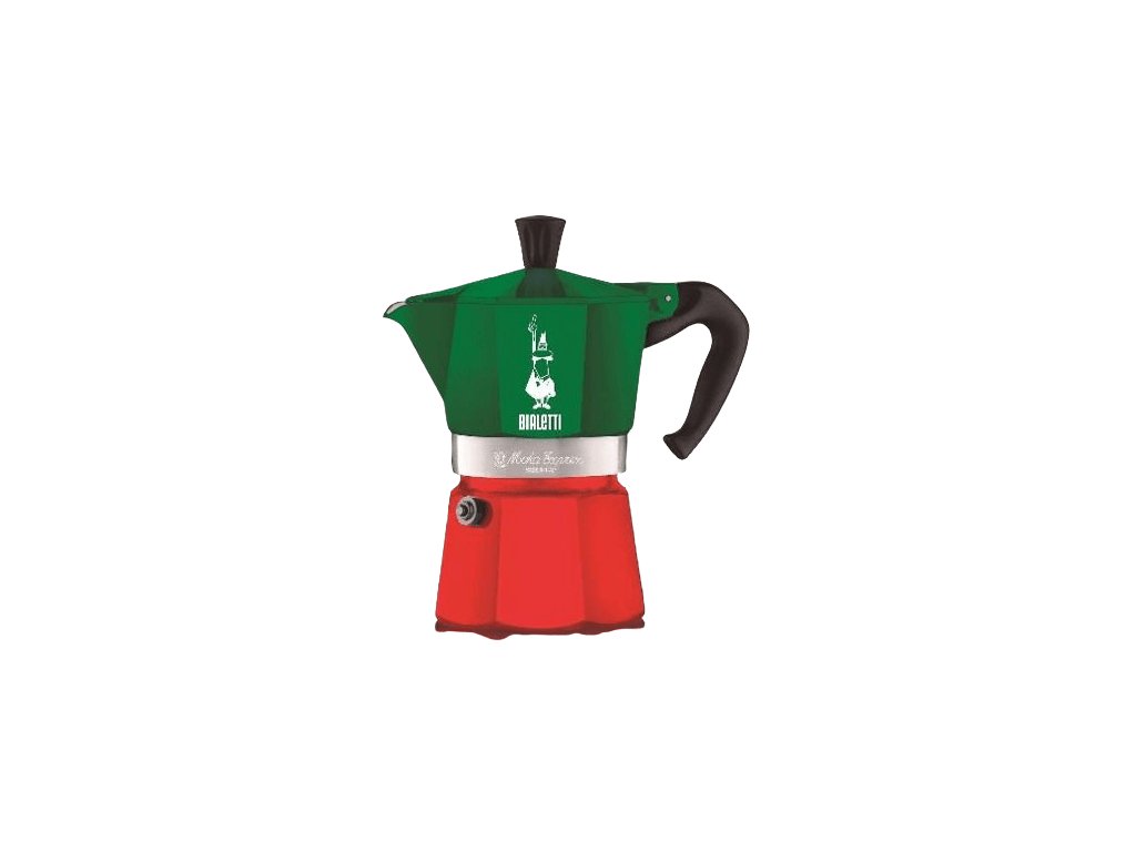 Kávovar Bialetti Moka Express Italia Tricolore na 6 šálok v štýle Art Deco, má osemboký tvar a je vyrobený z potravinárskeho hliníka vo viacfarebnom prevedení. Z vnútornej strany získava patinu, ktorá káve dáva neodolateľnú arómu a chuť. S pohodlnou plastovou rukoväťou.