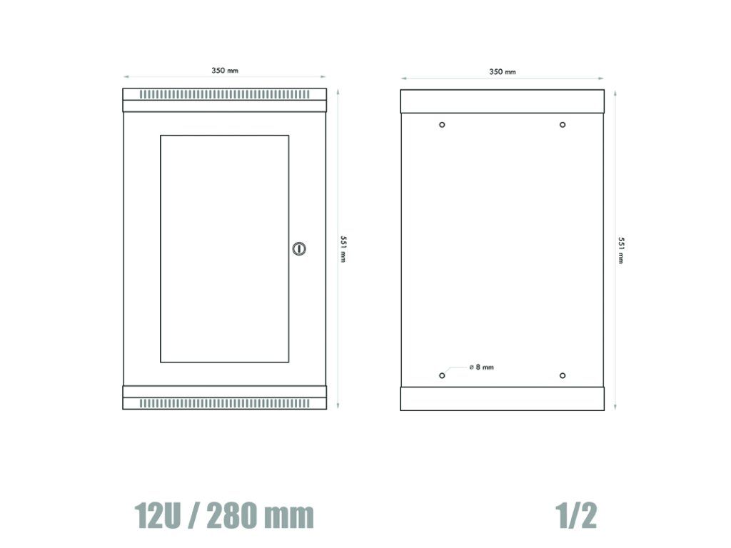 10'' rack jednodielny 12U/280 DATACOM šedý Skl.dv.