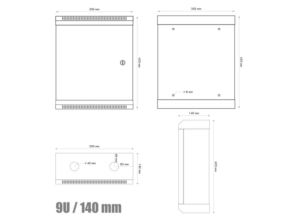 10'' rack jednodielny 9U/140 DATACOM čierny plech.dvere