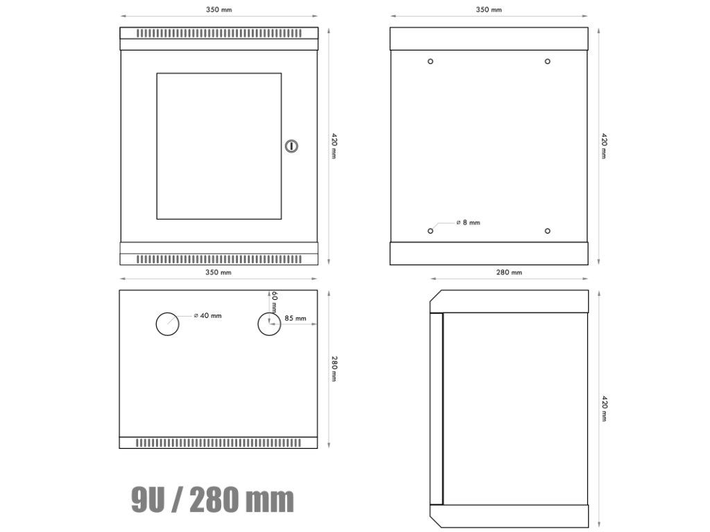 10'' rack jednodielny 9U/280 DATACOM čierny Skl.dv.