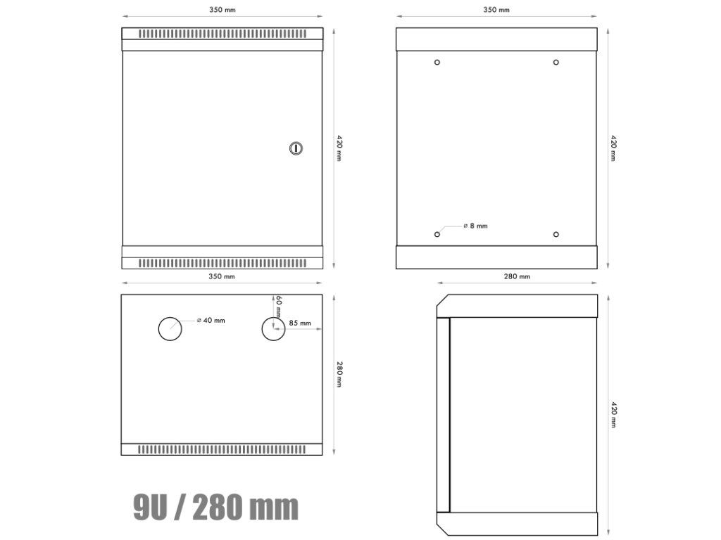 10'' rack jednodielny 9U/280 DATACOM sivý plech.dv.