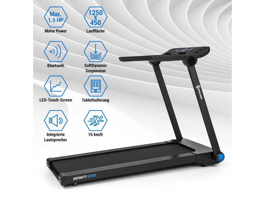 10034943 Capital Sports Infinity Edge, bežecký pás, 1,5 PS, Bluetooth, LED dotykový displej, čierny