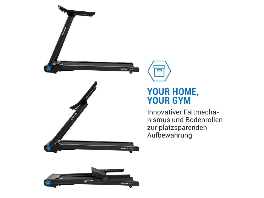 Run free s bežeckými pásmi rady Infinity od Capital Sport bude kardio tréning high-level-experience! Bežecký pás Infinity Edge prináša najmodernejšiu techniku bežeckých pásov pre tvoj vytrvalostný a kardio tréning s extra veľkou bežeckou plochou a vďaka LED dotykovému displeju a Bluetooth, ju jednoducho spája s tvojim tabletom alebo smartfónom. Okrem toho ponúka, pre obzvlášť prirodzený bez, mnohé komfortné funkcie ako sú zabudované reproduktory a SoftDynamic Suspension systém, pri ktorých aj zabudneš, že trénuješ - úplne nezávisle od počasia a času!Vitajte pri multimediálnom tréningu budúcnosti: pomocou Bluetooth spojenia otvára bežecký pás Capital Sports Infinity Edge svet Kinomap pre tvoj domáci tréning. Potrebuješ vizuálne podnety na tvoj beh? Žiadny problém, jednoducho siahni po tisícoch videí reálnych bežeckých tratí a spoznávaj ich počas tvojho tréningu. Mini počítač disponuje samozrejme možnosťou zdieľať tvoje tréningové pokroky priamo na tvoje smart zariadenie. Veľmi praktické: cez zabudovaný USB port alebo 3,5 mm AUX vstup si môžeš do zabudovaných reproduktorov zaobstarať tvoju obľúbenú hudbu a dodať tak tvojmu tréningu tú pravú hudbu. Aby bol tvoj tablet alebo smartfón dobre uložený, disponuje bežecký pás Capital Sports Infinity Edge vhodným držiakom. Takto si samozrejme môžeš jednoducho prehrávať aj filmy, čítať knihy alebo surfovať po internete, zatiaľ čo si v pokoji beháš. Bežecký pás Capital Sports Infinity Edge nie je len vo veci multimédia na najvyššej úrovni: veľká bežecká plocha 45 x 125 cm, výkon motora 1,5 PS a rýchlosťami do 16 km/h sa starajú o tréningové nároky, či už pre začiatočníkov alebo maratónových veteránov. Rýchlosť môžeš samozrejme pohodlne priamo ovládať cez držadlá so zabudovaným meračom tepu alebo cez veľký LCD dotykový displej. Okrem toho si tu môžeš voliť medzi 12 prednastavenými tréningovými programami a 3 užívateľskými režimami alebo kontrolovať parametre tvojho tréningu, akú sú pulz, odbehnutá trasa a spálené kalórie. O obzvlášť pohodlný, prirodzený pocit z behu ako v lese sa stará SoftDynamic Suspension, ktorý pás jemne odpruží vďaka viacvrstvovému systému.Po tréningu je vlastne pred tréningom: bežecký pás Capital Sports Inifinty Edge sa dá vďaka inovatívnemu systému skladania úplne jednoducho na obzvlášť skladné rozmery zložiť a pomocou zabudovaných koliesok ľahko premiestňovať. Bežecký tréning na najvyššom levely: s bežeckým pásom Capital Sports Infinity Edge.Upozorňujeme, že používaním aplikácie „Kinomap“ tretej strany môže spôsobiť dodatočné náklady.Najväčšie výhody: