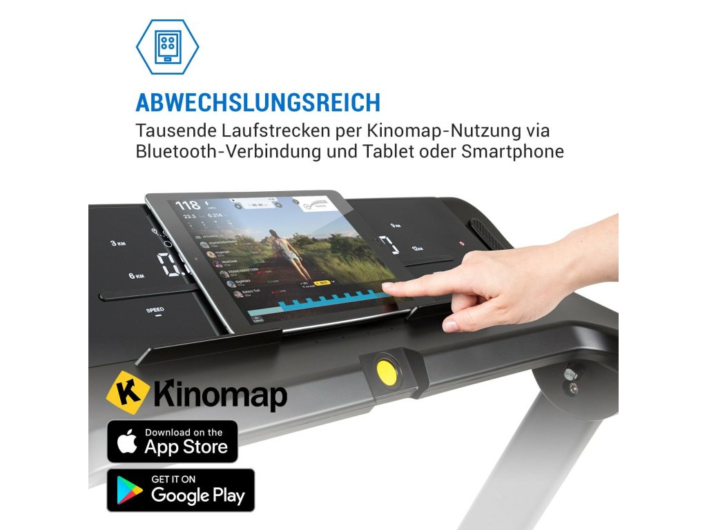 - rozmanitý: tisíce bežeckých tratí dostupné cez aplikáciu Kinomap cez Bluetooth a tablet alebo smartfón