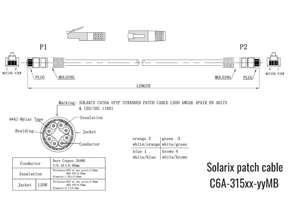 Stíněné patch kabely strukturované kabeláže Solarix kategorie 6A jsou vysoce spolehlivé a kvalitní komponenty, které jsou přizpůsobeny zvýšeným požadavkům na přenosové vlastnosti protokolu 10GBASE-T. Patch kabely jsou vyrobeny s tzv. litou ochranou, která zajišťuje pevné přilnutí konektoru k ochraně a také snižuje hodnoty přeslechu mezi jednotlivými páry v konektoru. Tato ochrana má speciální tenký design, který zaručuje, že lze tyto patch kabely použít v jakémkoliv patch panelu nebo aktivním prvku, a to i u zařízení s velkou hustotou portů. K výrobě patch kabelů jsou použity kvalitní konektory na licnu s krytím kontaktů 50 µ zlata. Patch kabely jsou nabízeny v různých délkách. Výhodou těchto spolehlivých patch kabelů kategorie 6A je tzv. dvojité stínění, kdy je každý pár v kabelu samostatně stíněn aluminiovou fólií a kolem všech čtyř párů v kabelu je veden oplet. Všechny patch kabely Solarix kategorie 6A jsou důkladně testovány a bez problému splňují požadavky na použití i pro ty nejnáročnější protokoly, které se na metalické kabeláži provozují, především pak 10GBASE-T.- Kategorie: CAT6A