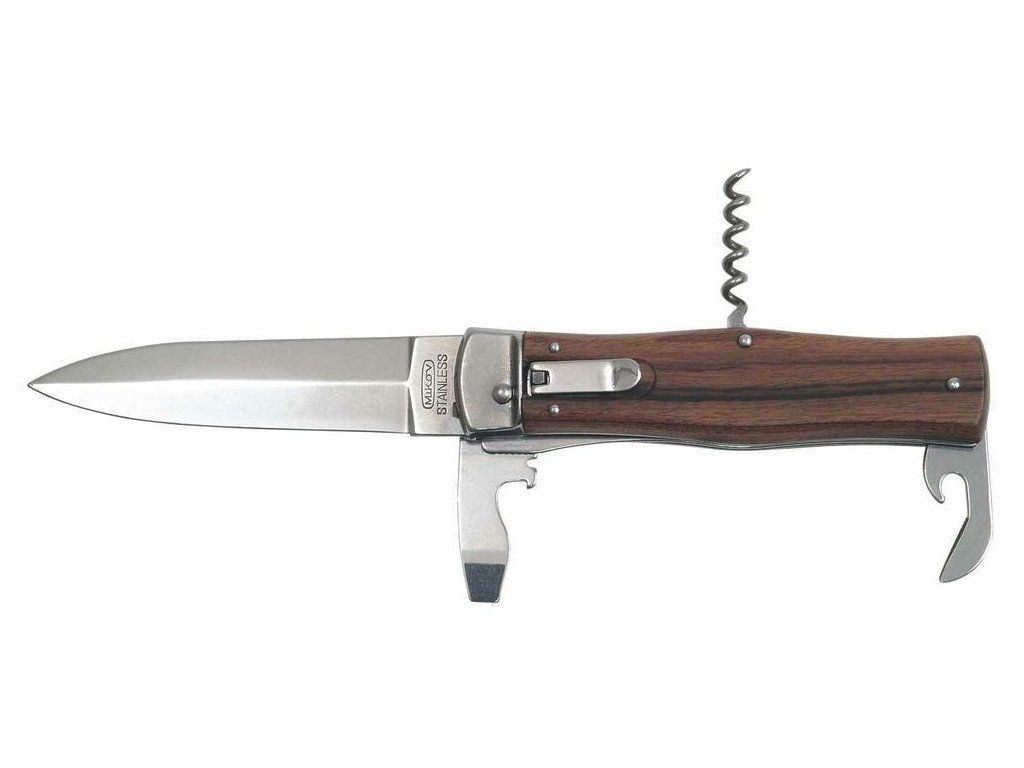 Má 4 funkcie - čepeľ, otvárač na fľaše/skrutkovač/odstraňovač izolácie drôtov, otvárač na konzervy a vývrtka.