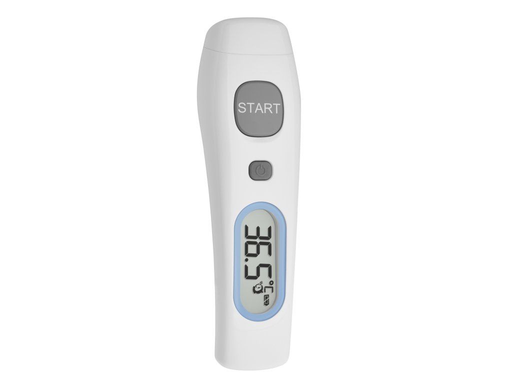 Bezkontaktný infračervený teplomer TFA Infrarot-Stirnthermometer 15.2024.02 na meranie teploty tela alebo povrchu, ideálny na rýchlu bezkontaktnú kontrolu telesnej teploty. S krátkou dobou odozvy (<1 sekunda). Hodí sa aj na meranie teploty detí.