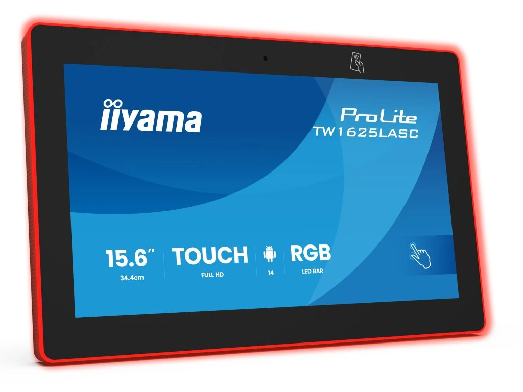 ProLite TW1625LASC-B3PNR 15.6” PCAP 10pt touchscreen PC with Android, Power over Ethernet Technology, NFC/RFID reader and a RGB LED bar around the screen Díky čtečce NFC/RFID umožňuje dotykový panel PC bezdrátovou komunikaci s povolenými zařízeními nebo značkami v blízkosti. ,Konektor RJ45 (LAN) podporující technologii Power over Ethernet (POE) umožňuje poskytovat datové připojení i napájení jediným kabelem, což zjednodušuje instalaci v oblastech, kde by mnoho kabelů narušovalo životní prostředí. Díky operačnímu systému Android můžete snadno přizpůsobit displej svým potřebám instalací aplikací přímo na něj. Díky tomu je obrazovka ideálním řešením pro polo- nebo plně automatizovaná řešení recepce, která umožňují firmám sledovat a řídit návštěvníky na recepci, aniž by ohrožovaly bezpečnost zaměstnanců, návštěvníků a majetku firmy. Typ obrazovky: ,IPS Panel Technology, Edge to edge glass Podsvícení: ,LED Úhlopříčka [palce]: ,15.6'', 34.4 cm Rozlišení: , 1920 x 1080 (1 megapixel HD) Rozteč bodu [mm]: ,0.1792 mm Poměr stran: ,16:9 Jas [cd/m2]: ,450, ,390 cd/m2 kromě dotekového panelu Kontrast: ,1000:1 kromě dotekového panelu Odezva [ms]: ,20 ms Pozorovací úhly (Horizontál/Vertikál): ,horizontální/vertikální:178°/178°,napravo/nalevo:89°/89°,nahoru/dolů: 89°/89° Počet barev: ,16.7mln 8bit Reproduktory: ,2 x 2W Konektory: , *Audio Out: Mini jack x1 *USB ports: x3 (1x v. 3.2 (Gen 1, 5Gbit, DC5V, 900mA), 1x 2.0 (DC5V, 500mA), 1 x USB-C (DC5V, 900mA)) *RJ45 (LAN): ,x1 (PoE - IEEE802.3at/30W) *Microphone: x1 *WiFi ,IEEE802.11ax/ac/a/b/g/n *Bluetooth 5.3 Dotyk *Touchscreen Technologie: projective capacitive *Touchpunkte: 10 (HID, only with supported OS) *Metoda dotyku: prst, rukavice (latex), *Touch interface: USB Napájení: ,externí, ,DC 12 V Spotřeba [W]: , 11 W typisch Stand By režim [W]: , ,0.5 W Montáž na zeď: ,VESA 75 x 75 mm Naklápění monitoru: ,horizontální, vertikální, face-up Barva: , černá, matná Rozměry (se stojanem, ŠxVxH mm): ,397 x 256 x 28.5 mm Hmotnost [kg]: ,2 kg Obsah balení: , *Příručky: uživatelský manuál, instrukce bezpečnosti *Ostatní: AC adapter, interchangeable plugs (EU/UK) *Kryt kabelů: ano Záruka: ,3 roky Stránky výrobce: ,https://iiyama.com/cz_cs/produkty/prolite-tw1625lasc-b3pnr/Dodatočné parametre