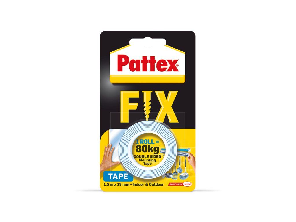 Pattex® Double -ded Adhesive Tape je univerzálna lepiaca páska na okamžitú a pevnú fixáciu predmetov v domácnosti, kancelárii, aute atď. Vhodné na použitie vo vnútri a vonkajšej strane pre absorpčné a ne -Absorbentné substráty. Odoláva teplotám od -40 ° C do +90 ° C. Jeho aplikácia je jednoduchá a čistá. Drží väčšinu materiálov. K dispozícii v dvoch verziách - s kapacitou zaťaženia 80 kg alebo 120 kg.Dodatočné parametre