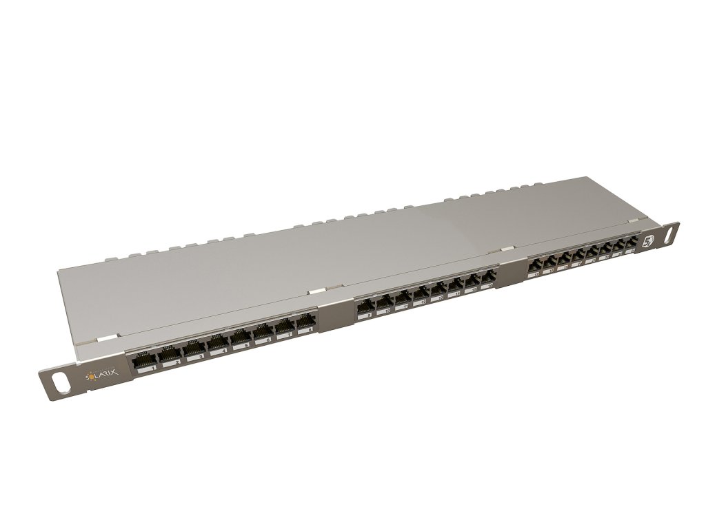 Patch panely Solarix s označením SX24HD-5E-STP-SL jsou vysokohustotní 19" patch panely s výškou 0,5U, které jsou osazeny 24 porty RJ45 a duální IDC svorkovnicí 110/Krone. U těchto panelů je důraz kladen na maximální úsporu místa v rozvaděči, kdy do výšky 1U lze jednoduše nainstalovat až 48 portů. Tyto high-density panely Solarix jsou dostupné ve stíněném i nestíněném provedení a bez problémů splňují požadavky definované v mezinárodních standardech ANSI/TIA 568, ISO/IEC 11801 a EN 50173 včetně všech nejnovějších dodatků pro kategorii 5E a třídu vedení Class D. Panely jsou navrhnuty tak, aby byly robustní, spolehlivé, poskytovaly maximální výkon a umožňovaly jednoduchou instalaci. Součástí těla těchto panelů je vyvazovací lišta, která umožňuje pevné uchycení a přehledné uspořádání datového kabelu. V případě stíněného provedení je tento panel vyroben z pozinkovaného plechu.Klíčové vlastnosti patch panelů Solarix 0,5U
