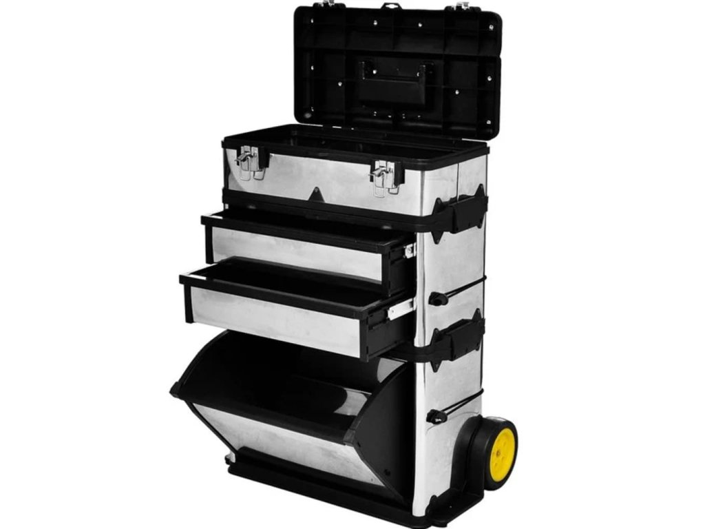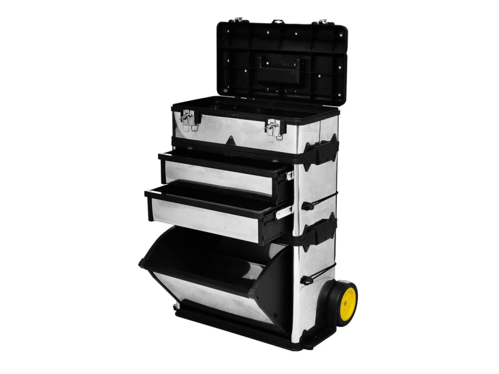Box na náradie je ideálny pre každého, kto potrebuje so svojím náradím často cestovať, no poslúži aj ako mobilné centralizované miesto na hobby náradie či umelecké a remeselné potreby. Obsahuje 3 samostatné priečinky: tradičný box na náradie, priečinok s 2 zásuvkami a veľký box v spodnej časti.