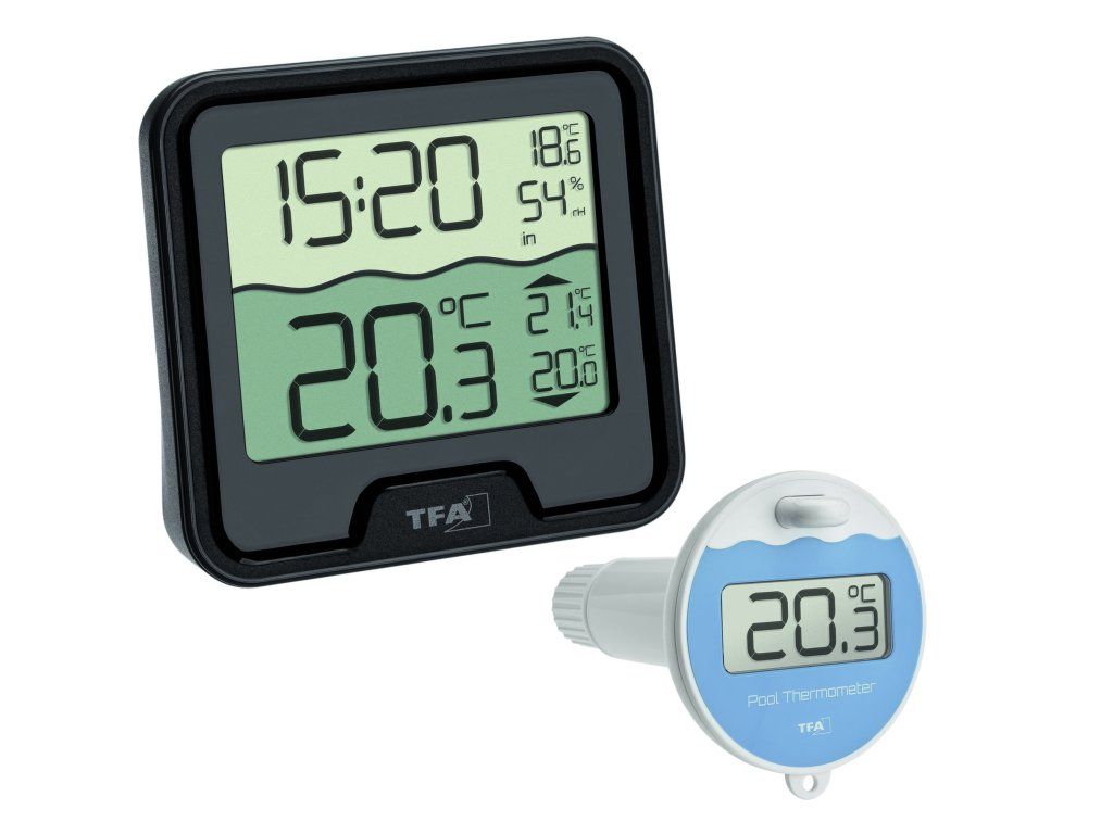 Digitálny teplomer TFA 30.3066.01 MARBELLA je vybavený bezdrôtovým plávajúcim čidlom na meranie teploty vody. Ako voliteľné príslušenstvo sa dajú dokúpiť prípadne až 2 ďalšie senzory pre meranie teploty a vlhkosti vzduchu (TFA 30.3239.02) . Príjem a zobrazenie meraných hodnôt prebieha pomocou rádiového signálu na frekvencii 868 MHz až na vzdialenosť 100 m.