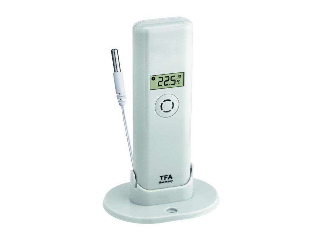 Bezdrôtové čidlo TFA 30.3313.02 s teplotnou káblovou sondou na kontrolu vonkajšej i vnútornej teploty. Disponuje vodotesným káblovým senzorom pre kontrolu teploty v bazéne, jazierku, chladničke, mrazničke aj v akváriu.