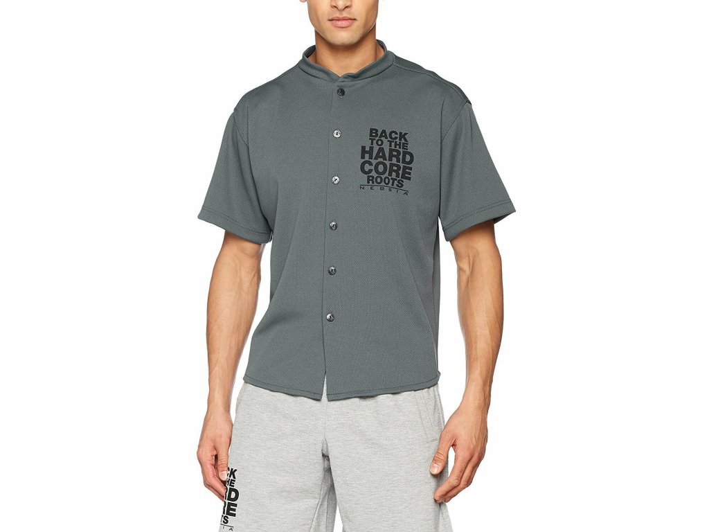 Pánska sivá košeľa Nebbia 304 Hardcore Button Shirt Grey s krátkym rukávom. Má pohodlný voľnejší strih a moderný dizajn. Výborne saje pot a je vhodná na náročnejšie tréningy.