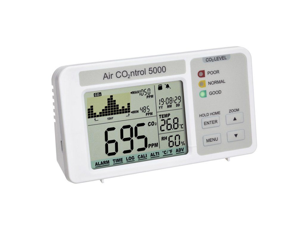 Záznamník oxidu uhličitého TFA AIRCO2NTROL 5000 31.5008.02 Weiss vhodný na kontrolu znečisteného vzduchu v budovách ako školy, kancelárie či verejné zariadenia.