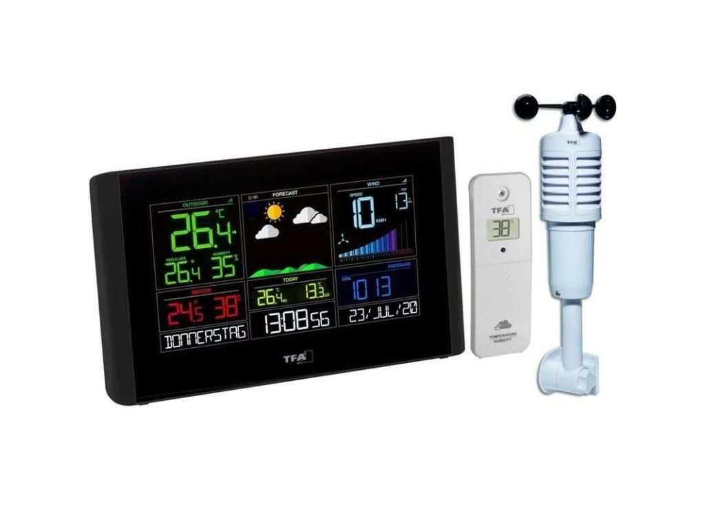 Funkcie s pripojením: rýchlosť a smer vetra, vnútorná a vonkajšia teplota/vlhkosť, indikácia hodnoty windchill, rosného bodu a tlaku vzduchu, 12hodinová predpoveď (z internetu), 7denná predpoveď (z internetu), automatické nastavenie času a kalendára cez internet, predpoveď MAX/MIN hodnôt teploty, pravdepodobnosť zrážok v %, predpoveď počasia z internetu, budík a MAX/MIN hodnoty na základni, maximálny počet bezdrôtových čidiel zobrazených na displeji základne (6), maximálny počet bezdrôtových čidiel zobrazených v aplikácií TFA VIEW (50), sledovanie nameraných hodnôt a alarmov cez TFA VIEW aplikáciu, prídavné informácie o počasí a personalizované správy, možnosť pripojenia ďalších vysielačov