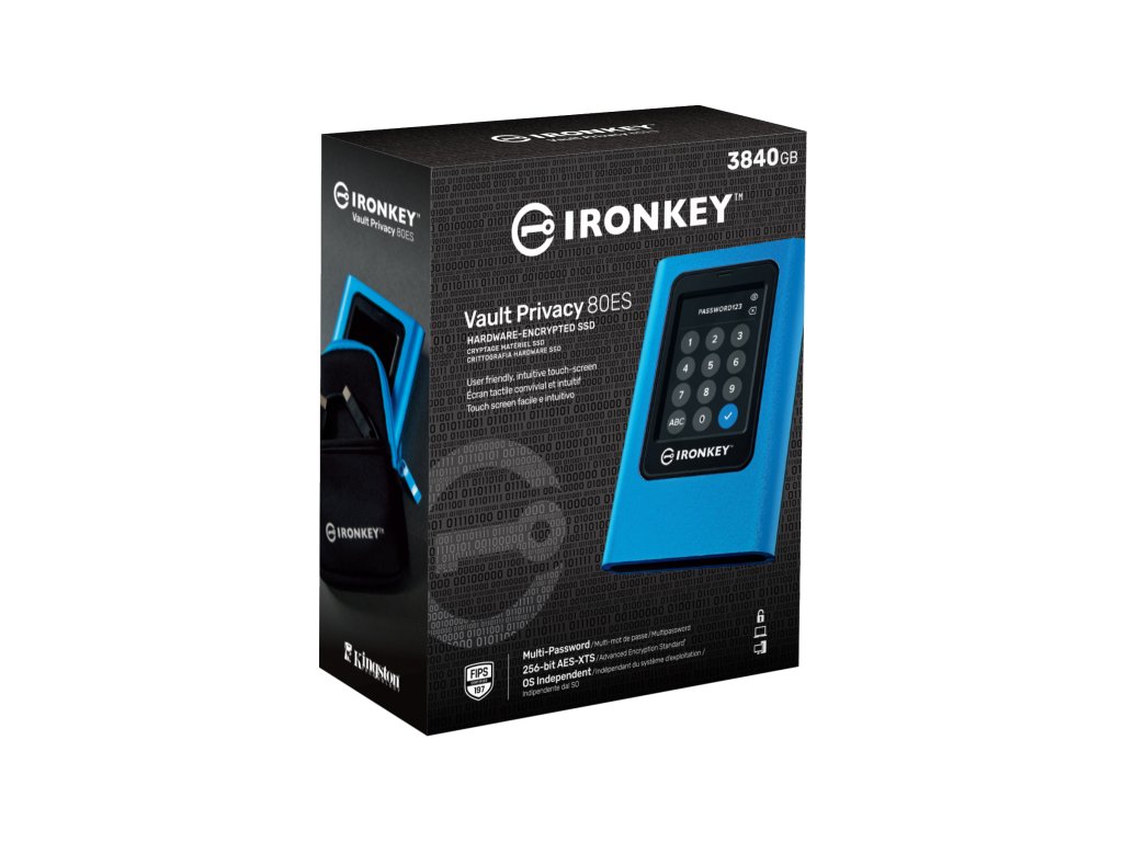 Externí SSD disk Kingston IronKey Vault Privacy 80 je první inovativní hardwarově šifrovaný externí SSD disk firmy Kingston s dotykovou obrazovkou pro ochranu dat. VP80ES chrání proti útokům hrubou silou a útokům BadUSB s digitálně podepsaným firmwarem. Ochrana před útoky hrubou silou šifrovaně vymaže disk, pokud jsou ve výchozím nastavení 15× za sebou nesprávně zadána hesla správce a uživatele. Disk má certifikaci FIPS 197 s 256bitovým šifrováním XTS-AES využívajícím certifikovaný bezpečnostní mikroprocesor Common Criteria EAL5+ (CC EAL5+) a je v souladu s TAA. Se stejně přirozeným odemykáním jako u chytrého telefonu a jednoduchými přenosy souborů přetažením je VP80ES vytvořen tak, abych chránil data a zároveň byl přívětivý k uživateli. Díky intuitivní barevné dotykové obrazovce a možnosti více hesel (správce a uživatel) s režimy číselného kódu PIN nebo přístupového hesla, je Vault Privacy 80ES lepší než používání internetu a cloudových služeb k ochraně dat. Ať už se jedná o důležité firemní údaje, dokumenty klientů nebo snímky a videa ve vysokém rozlišení, disk je ideální pro malé až středně velké podniky (SMB) a pro tvůrce obsahu. Dodává se se dvěma kabely pro připojení ke kabelům adaptéru USB 3.2 Gen 1, USB Type-C®** k typu A a C-C, což umožní snadné připojení k počítači a dalším zařízením. VP80ES je dokonalým společníkem, když potřebujete zabezpečená data a obsah v terénu nebo na cestách. Nabízí vysokou produktivitu a pohodlí ve vaší dlani. Je ideální k pravidelnému zálohování dat a chrání proti ransomwaru. Správce může povolit uživatelské heslo a nastavit možnosti zabezpečení, jako je konfigurace požadavků na heslo nastavením maximálního počtu sdílených pokusů, minimální délky hesla 6–64 znaků a alfanumerických pravidel pro hesla. Navíc můžete využít znak „mezera“, který usnadňuje zapamatování přístupového hesla jako seznamu slov, zapamatovatelného citátu nebo textu z oblíbené písně. Nebo můžete použít k odemčení disku číselník pro zadání kódu PIN stejně jako u mobilního zařízení a omezit počet neúspěšných pokusů o přihlášení a frustraci klepnutím na tlačítko oka pro zobrazení zadaného hesla. Přidanou funkcí pro případ zapomenutí uživatelského hesla je heslo správce, které lze použít pro přístup k datům a obnovení přístupu uživatele. * Certifikace FIPS 197 s 256bitovým šifrováním XTS-AES * Jedinečná intuitivní dotyková obrazovka * Možnost použití více hesel (správce/uživatel) a režimů kódu PIN/hesla * Konfigurovatelná pravidla pro hesla * Duální režimy pouze pro čtení (ochrana proti zápisu) pro ochranu proti malwaru * Je ideální k pravidelnému zálohování a chrání proti ransomwaru Rozhraní: USB 3.2 Gen 1 type C Rychlost čtení: 250 MB/s Rychlost zápisu: 250 MB/s Zabezpečení: certifikace FIPS 197 s šifrováním XTS-AES 256-bit Barva: Modrá Materiál: Zinek + plast Rozměry: 122.5 x 84.2 x 18.5 mm Váha: 284,9g Obsah balení: * SSD * Neoprenový cestovní obal * Kabel USB-C na USB-C * Kabel USB-C na USB-ADodatočné parametre