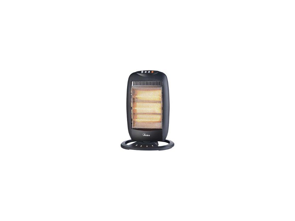 Halogénový ohrievač Ardes 454B s 3 lampami. 3 stupne výkonu 400/800/1200 W. Možnosť oscilácie. Automatické vypnutie pri prevrhnutí. Ochrana pred prehriatím. Vhodný pre miestnosť do 40 m3. Rozmery (ŠxHxV): 38x 55x 28 cm, váha 1,7 kg, farba: čiernaDodatočné parametre