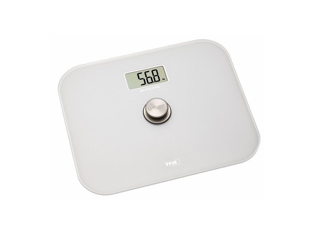 Digitálna váha TFA 50.1014.02 ECO STEP na meranie telesnej hmotnosti s jedinečným dizajnom. Ide o patentovaný ekologicky šetrný prístroj, ktorý k svojmu fungovaniu nepotrebuje batérie.