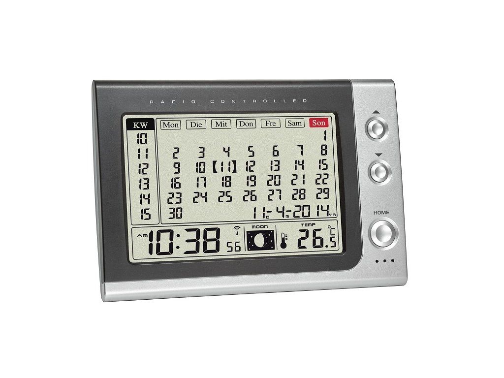 Veľký displej zobrazuje prehľad celého mesiaca vrátane kalendárneho týždňa a dňa v týždni a fázy mesiaca.