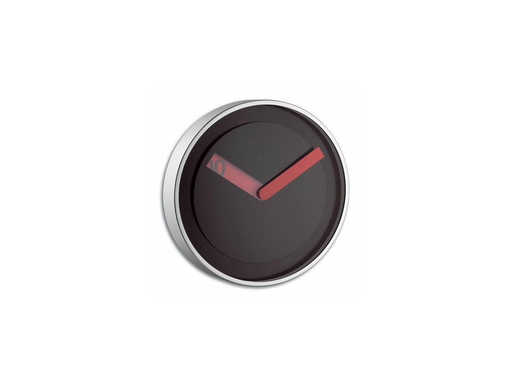Analógové nástenné hodiny TFA 60.3003 s elegantným dizajnom. Ciferník zmizne úplne za krytom čierneho tónovaného skla. Červená hodinová ručička zobrazuje iba aktuálnu hodinu. Rám z nehrdzavejúcej ocele zdôrazňuje vysoko kvalitný charakter hodiniek.