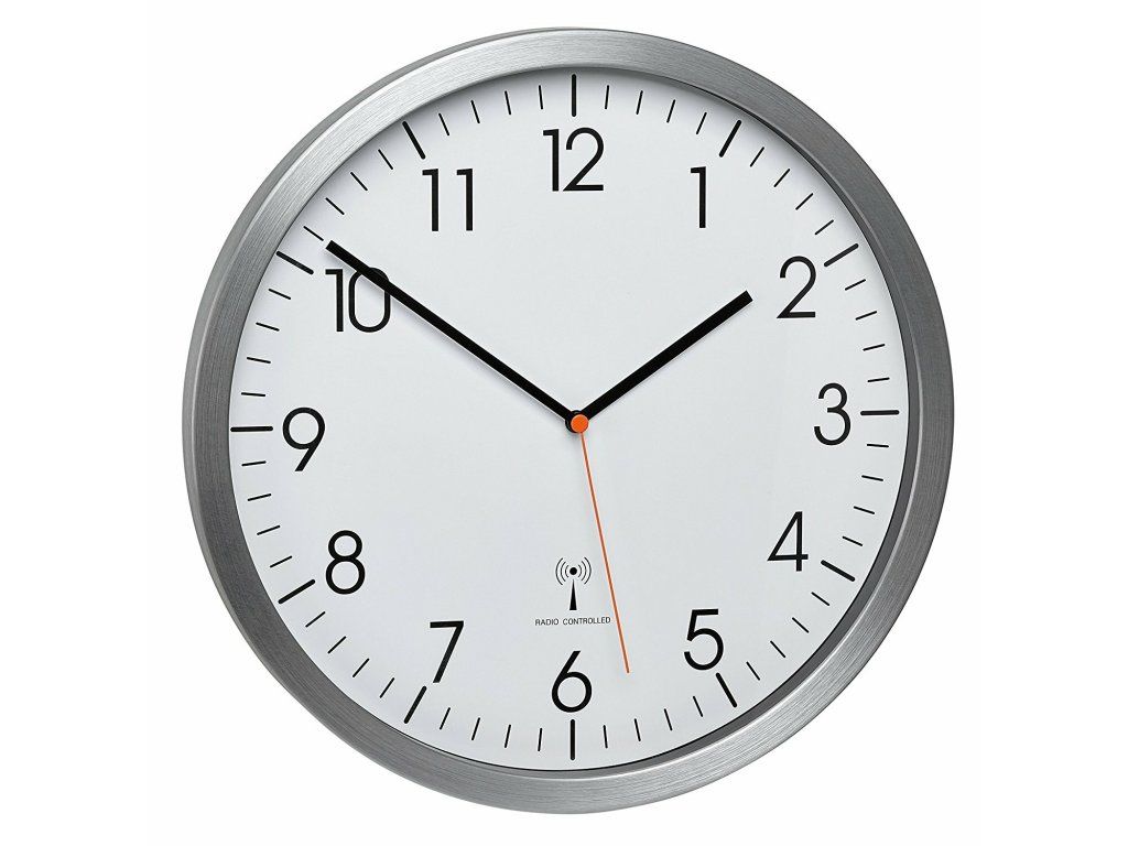 60.3527.55 TFA Rádiom riadené analógové nástenné hodiny s hliníkovým rámom