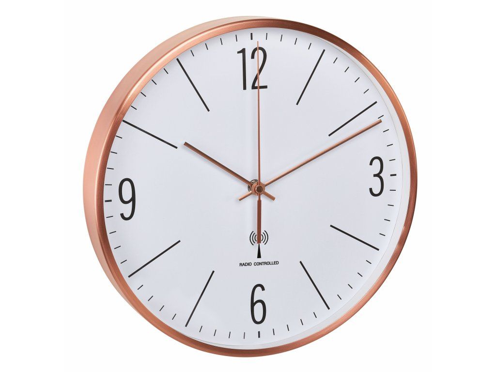 60.3534.51 TFA Rádiom riadené analógové nástenné hodiny s kovovým rámom medenej farby
