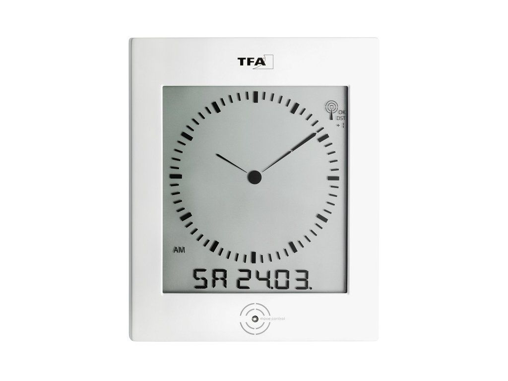 60.4506 TFA Rádiom riadené hodiny s teplomerom, LCD analógový displej, biele