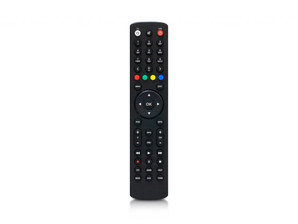 Programovateľné diaľkové ovládanie pre prijímače: AB CryptoBox rady 8XX/7XX/6XX/5XX/4XX AB TereBox 2T PULSe 4K a PULSe 4K MINI S týmto ovládaním môžete okrem prijímača zapnúť aj televízor a ovládať hlasitosť na Vašej TV. Intuitívne rozmiestnenie tlačidiel v ergonomickom slim dizajne a s matnou povrchovou úpravou pre elimináciu odtlačkov prstov. Segmentačné rozdelenie tlačidlových skupín. Farebné tlačidlá sú umiestnené v blízkosti tlačidla OK a smerových tlačidiel. Optimálnejšie rozdelenie tlačidiel pre orientáciu po hmate. Tlačidlá OK, smerové tlačidlá, MENU, EXIT, PVR, EPG sú rozmiestnené rovnako ako pri pôvodných verziách ovládačov značky AB CryptoBox a PULSe.