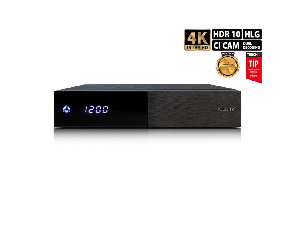 PULSe 4K (verzia: 1x tuner DVB-S2X + 1x tuner DVB-T2/C) je prijímač s rozlíšením UHD a operačným systémom ENIGMA 2. Nádherný obraz v rozlíšení 4K je úchvatný, rovnako ako obrazové štandardy HDR / HDR10 a HLG. O výkon a rýchlosť obrazu sa postará štvorjadrový procesor s 15 000 DMIPS, 8 GB FLASH pamäte a 2 GB DDR4 RAM. Prijímač obsahuje zabudovaný tuner DVB-S2X a pozemný/káblový tuner DVB-C/T2, vďaka čomu je pripravený na satelitné, pozemné a káblové vysielanie od rôznych operátorov.