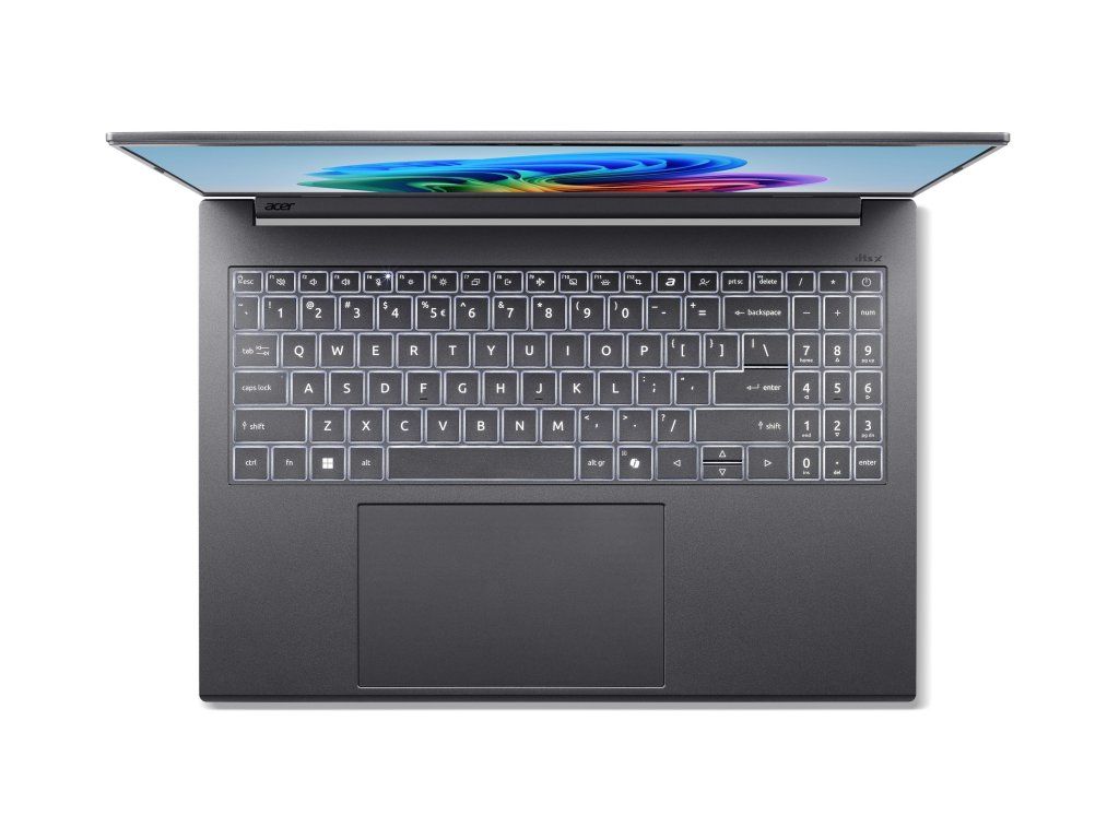 Acer Aspire 16 AI (A16-11M-X18U) Copilot+ PC * klávesa Copilot (AI) * klávesa Acer Sense Operační systém: Windows 11 Home Procesor: Snapdragon X X1 26 100 (8 jader, 8 vláken, 3,0 GHz, 30 MB cache) NPU: Qualcomm® Hexagon™ až 45 TOPS Paměť: 16GB LPDDR5X na desce Pevný disk: 512GB PCIe NVMe SSD PM4 Optická mechanika: ne Čtečka paměťových karet: microSD Displej: 16'' WUXGA (1920x1200) 16:10 antireflexní IPS, 30Hz~120Hz 350 nitů Grafická karta: Integrovaná Qualcomm Adreno GPU Audio: DTS® X:Ultra Audio, 2x mikrofon Web kamera: QHD IR MIPI TNR Polohovací zařízení: OceanGlass™ Touchpad Podsvícená klávesnice: ano Numerická klávesnice: ano Čtečka otisku prstů: ne Síť: ne Bezdrátová komunikace: WLAN + Bluetooth (Wifi 7 802.11be 2x2 MU-MIMO + BT 5.3) Porty USB: * 2x USB typ C™: USB4® 40Gbps/Thunderbolt™ 4 (podpora DisplayPort přes USB-C/USB nabíjení 5V, 3A/DC-in port 20V, 65W) * 2x USB 3.2 Gen1 Další porty: * 1x HDMI 2.1 * 1x čtečka microSD karet * 1x kombinovaný konektor pro sluchátka/mikrofon (3,5mm) * 1x bezpečnostní slot Kensington Baterie: 65Wh Li-ion Napájení: 65W USB-C Barva: šedá (Steel Gray) Materiál: hliník Záruka: 2 rokyDodatočné parametre