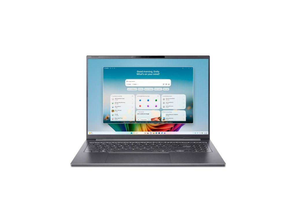 Acer Aspire 16 AI (A16-I71M-50NJ) Copilot+ PC *Acer Sense Operační systém: Windows 11 Home Procesor: Intel Core Ultra 5 325 (8 jader - 4P + 4LPE, 8 vláken, P-core 2,1/4,5 GHz, LPE-core 1,6/3,4 GHz, 12 MB cache) NPU: NPU Intel® AI Boost, až 47 TOPS Paměť: 16GB LPDDR5X na desce Pevný disk: 512GB PCIe NVMe SSD PM4 Optická mechanika: ne Čtečka paměťových karet: ne Displej: 16'' WUXGA (1920x1200) 16:10 anfireflexní IPS, 350 nitů, 120 Hz Grafická karta: Integrovaná Intel Arc/Intel Graphics Audio: 2x reproduktor, 2x mikrofon Web kamera: FHD IR USB TNR Polohovací zařízení: Touchpad Podsvícená klávesnice: ano Numerická klávesnice: ano Čtečka otisku prstů: ne Síť: ne Bezdrátová komunikace: WLAN + Bluetooth (Wifi 6E Intel 802.11ax 2x2 MU-MIMO CNVi + BT 5.2) Porty USB: *2x USB-C™: USB4® 40Gb/s/Thunderbolt™ 4 (USB nabíjení 5V, 3A/DC-in 5/9/15/20 V, 65/100 W) *2x USB 3.2 Gen1 Další porty: *1x kombinovaný konektor pro sluchátka/mikrofon (3,5mm) *1x HDMI 2.1 *1x bezpečnostní slot Kensington Baterie: 65Wh Li-ion Napájení: bez adaptéru (100W USB-C) Barva: Steel Gray Rozměry: 354,9x250,1x11,5-15,8mm Hmotnost: 1,52kg Záruka: 2 rokyDodatočné parametre
