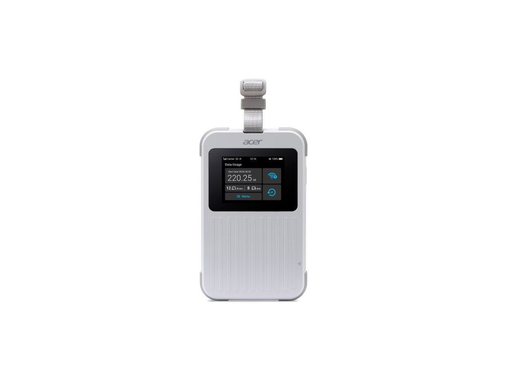 Acer Connect Enduro M6E mobilní WiFi hotspot router s duální konektivitou 5G<E * 2,4” dotykový displej * až 32 zařízení * rychlost AX3000 * NFC * IP68 a odolnost proti pádu až do 1,22 m * MIL-STD 810H Specifikace Síť: Wifi 6E 802.11 a/b/g/n/ac/ax, Dual-band 2,4 GHz + 5 GHz nebo 2,4 GHz + 6 GHz Procesor: Mediatek Octa Core Cortex A78/A55 2,4 GHz Paměť: 3GB LPDDR4X Anténa: interní Baterie: 8000 mAh (rychlé nabíjení) Napájení: bez adaptéru (doporučený 15W, 5V/3A) Barva: bílá Porty: * 1x USB Type-C 3.0 * NanoSIM a eSIM + VirtualSIM (SIMO)Dodatočné parametre