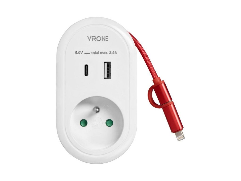 Adaptér ORNO VIRONE CS-2 230V s USB-C+A nabíjačkou a káblom USB-C + Lightning