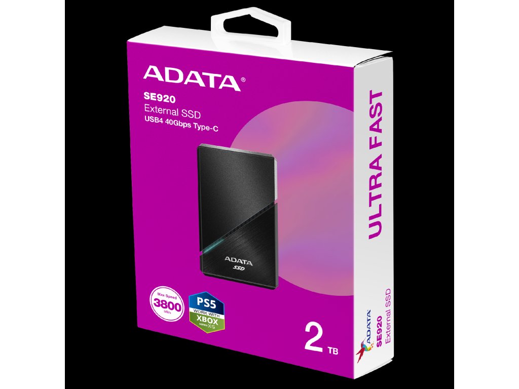 Externí disk SE920 využívá přenosové rozhraní USB4 nejnovější generace, které dosahuje rychlostí až 40 Gb/s. Je zpětně kompatibilní s rozhraním USB 3.2 a USB 2.0 a podporuje Thunderbolt3/4. Vedle toho nabízí port Type-C a dokáže snadno a rychle přenášet velké zvukové a video soubory, a to s ultra vysokou rychlostí, kdykoli, kdekoli. SE920 nabízí rychlost přenosu až 3800 MB/s. Přenos 10GB videa s vysokým rozlišením 4K trvá přibližně 3 sekundy. Disk SE920 je vybaven jedinečným systémem pro odvod tepla s vestavěným mikroventilátorem. Při používání zařízení můžete zatlačením na pouzdro aktivovat ventilátor, zvětšit vnitřní plochu pro chlazení a tím zajistit rychlejší odvod tepla. Pouzdro lze znovu zasunout, aby se disk lépe přenášel. Tento originální systém patentovaného aktivního chlazení zajišťuje o 10 % nižší teplotu v porovnání s podobnými produkty bez ventilátoru. Specifikace: * Rozhraní USB4 (podpora rychlosti 40Gbps), konektor typ C * Zpětně kompatibilní s USB 3.2/2.0 * Rychlost čtení 3800 MB/s * Rychlost zápisu 3700 MB/s (Přenosová rychlost je odhadovaná teoretická hodnota a skutečná rychlost se bude lišit podle hardwarové a softwarové konfigurace příslušného systému.) * Vestavěný mikro fan * Podpora Windows, Mac OS, Android, konzole Xbox one, XBOX Series X|S, PS4 a PS5 * Systémové požadavky: Windows 10 / 11, MacOS 13 nebo novější, Linux Kernel 6 nebo novější, Android 13 nebo novější * Rozměry 105 x 64.2 x 15.9mm (při zavřeném větrání) * Váha 181,52 g * Záruka 5 let limitovaná Recenze: https://www.pcworld.com/article/2289586/adata-se920-external-ssd-review.html Recenze: https://diit.cz/clanek/minirecenze-adata-se920-2tb-externi-ssd-s-usb4-thunderbolt-4 Recenze: https://pctuning.cz/article/rychle-externi-ssd-disky-adata-otestovali-jsme-nejoblibenejsi-modelyDodatočné parametre