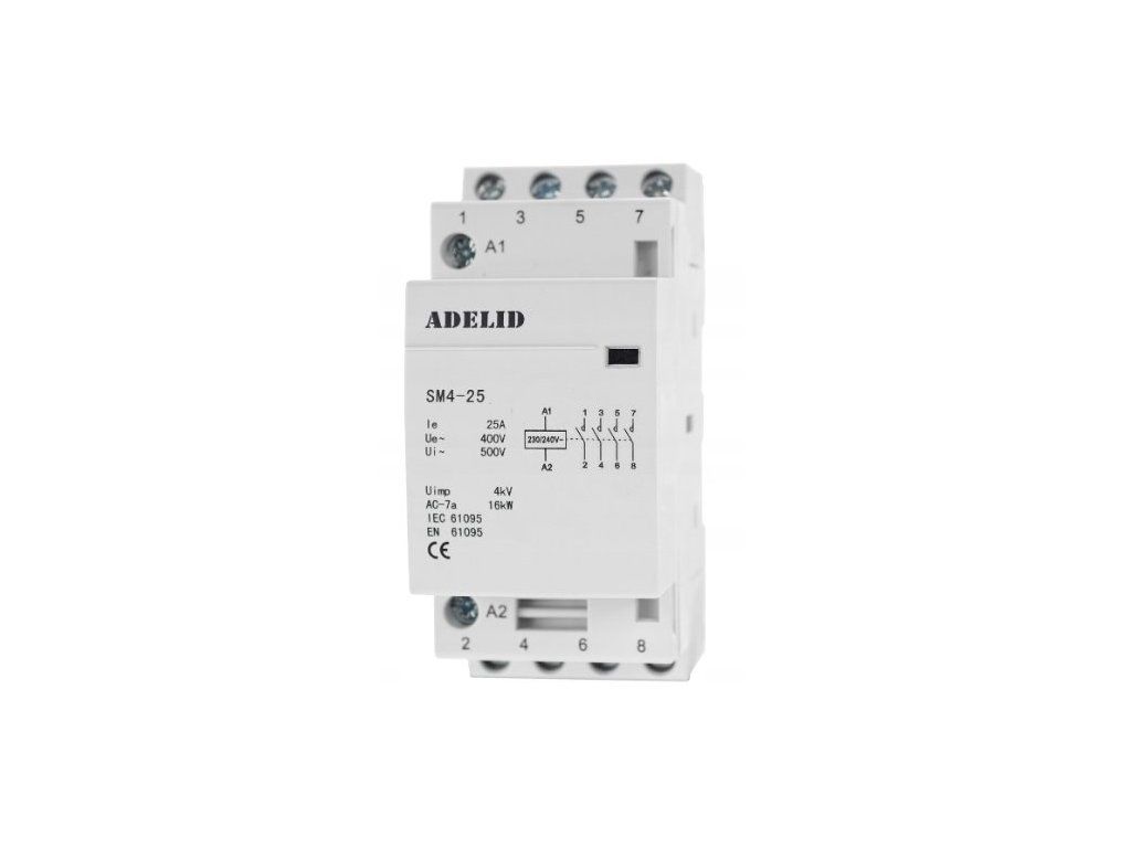 Adelid SM4 25-22-230V Modulárny stýkač 25-40 230V 25A 4Z 3fázový 2NO 2NC25A 2-modulový modulárny stýkač od ADELID.