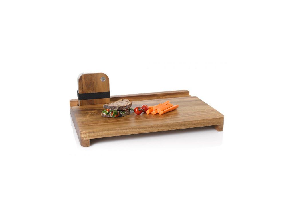 - doska z akáciového dreva na prípravu desiaty, so zabudovanou krabičkou na okamžité servírovanie
