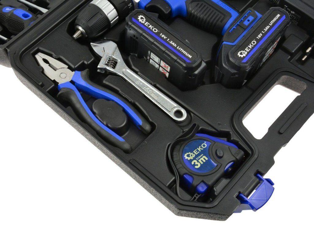 Akumulátorový šroubovák 18 V + nářadí, 46 ks GEKO