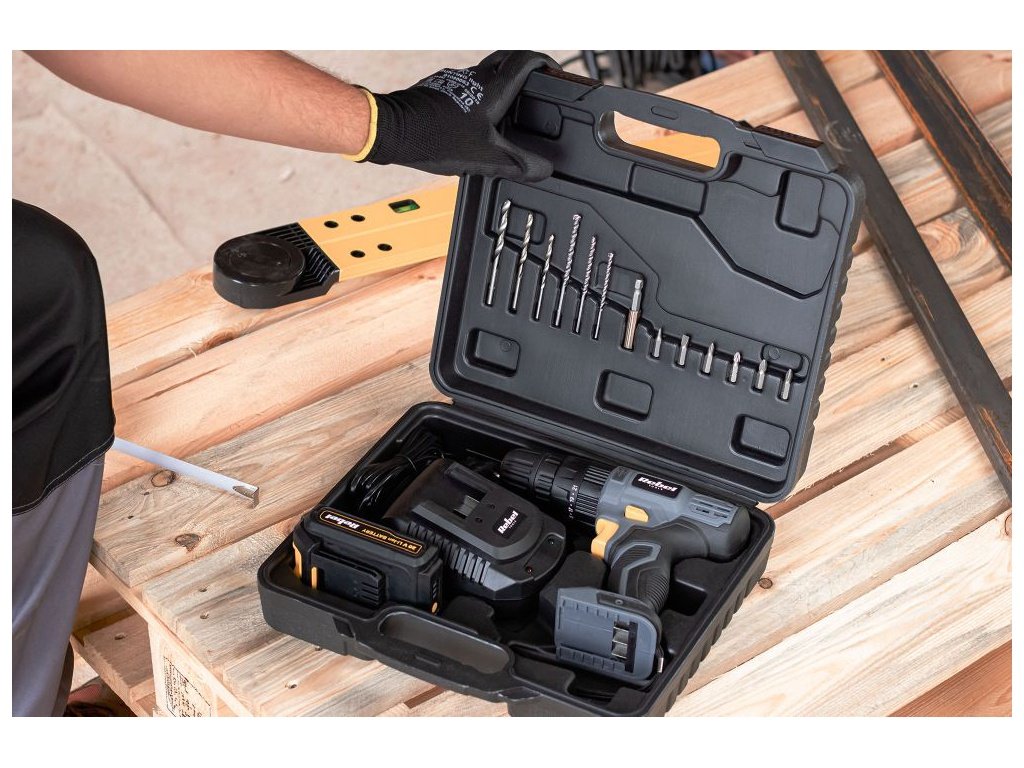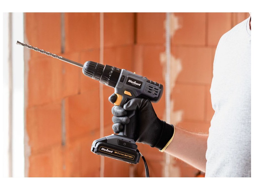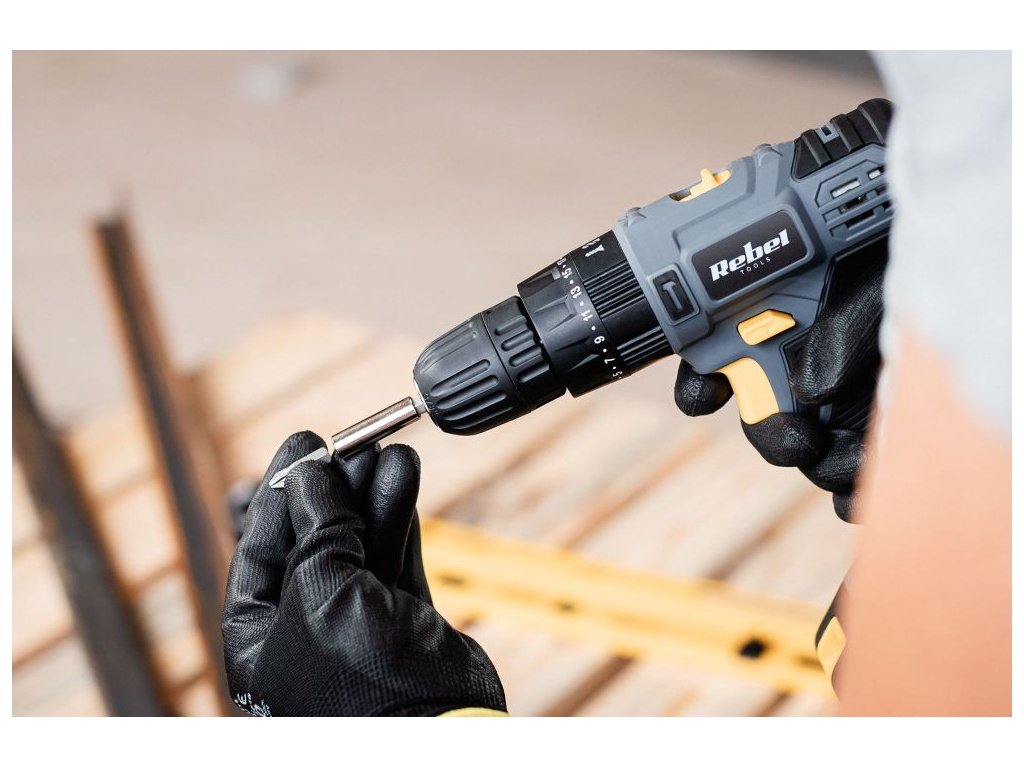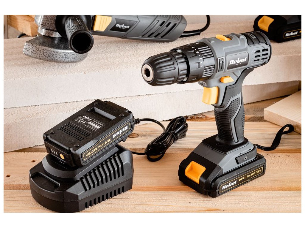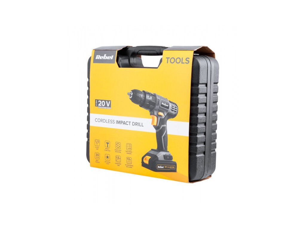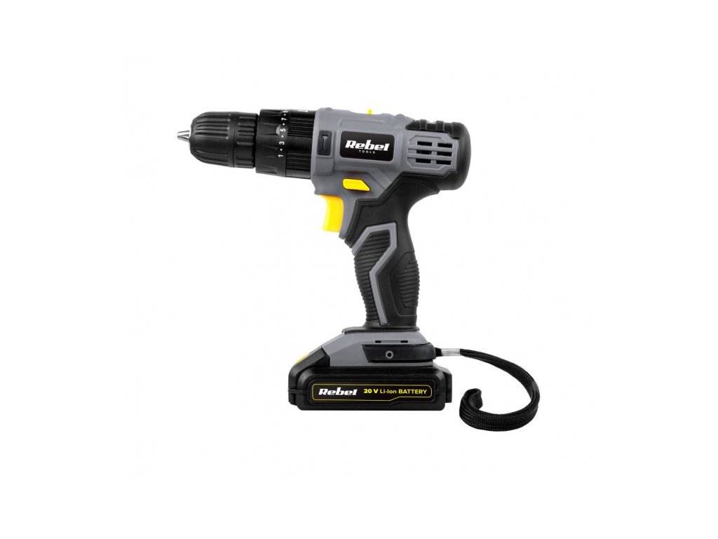 Akumulátorový vŕtací skrutkovač s príklepom 20V 2Ah REBEL TOOLSFunkcie: skrutkovanie, vŕtanie, príklep