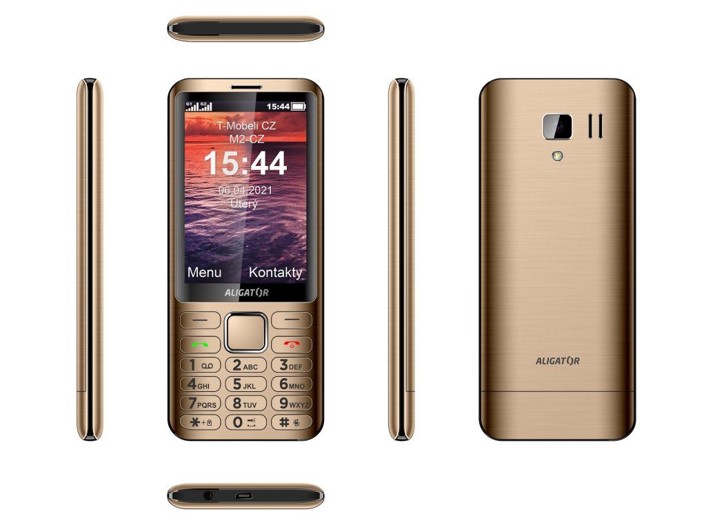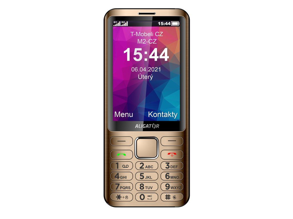 * Jedná se o tlačítkový telefon vyšší třídy. Obrovský 3,5'' displej a ultratenké kovové tělo. Nadstandardní výbava a luxusní vzhled. Dálková správa a SOS funkce. * Exkluzívní design Klasická koncepce ovládání tlačítky, s obřím 3.5'' displejem a skvělým zobrazením. Pohodlná klávesnice s oddělenými tlačítky. Vše co potřebujete pro pohodlné telefonování je dostupné jedním prstem na čtyř-směrovém tlačítku (joysticku). * Vyladěné menu a skvělé nové funkce Obrázkové menu, dobře čitelné písmo, kalendář s připomínkami, multimediální zprávy MMS, kalkulačka, přehrávač a spousta dalších oblíbených funkcí. Nechybí samozřejmě ani SOS locator, který umožňuje stiskem jednoho tlačítka aktivovat nouzové volání a odeslat polohu telefonu v mapě * Dálková správa telefonu Přidávejte kontakty a připomínky do kalendáře pomocí SMS zprávy! Pomocí SMS lze do D950 na dálku přidávat nové kontakty, připomínky do kalendáře, ale také vyžádat polohu a stav telefonu. *Svítilna *Budík *Kalkulačka *FM rádio *Podpora SIM toolkit *SOS SMS *SOS Locator Paměť: *Paměť kontaktů v telefonu: 1000 *Paměť na SMS: 1000 *Slot pro microSD kartu Displej - úhlopříčka [palce]: Barevný TFT - 3.5“ Displej - rozlišení [pix]: 320 x 480 px HVGA Klávesnice: ano Podporované sítě: 850/900/1800/1900Mhz Konektivita: 2x Normální SIM *Nabíjení a data: Micro USB *Sluchátka s handsfree: Jack 3,5mm Senzory: Vibrace Fotoaparát: 2Mpix (s interpolací) Baterie: Typ: Li-Ion Kapacita [mAh]: 2000 mAh Výdrž v pohotovostním režimu: až 6 dnů Výdrž při hovoru: až 3 hodiny Rozměry [mm]: *Výška: 152 mm *Šířka: 64 mm *Hloubka: 10.8 mm Obsah balení: *Mobilní telefon D950 *Baterie *Nabíječka *Návod k použití Záruka: 24 měs. https://www.aligator.cz/aligator-d950-dual-sim-zlaty/Dodatočné parametre