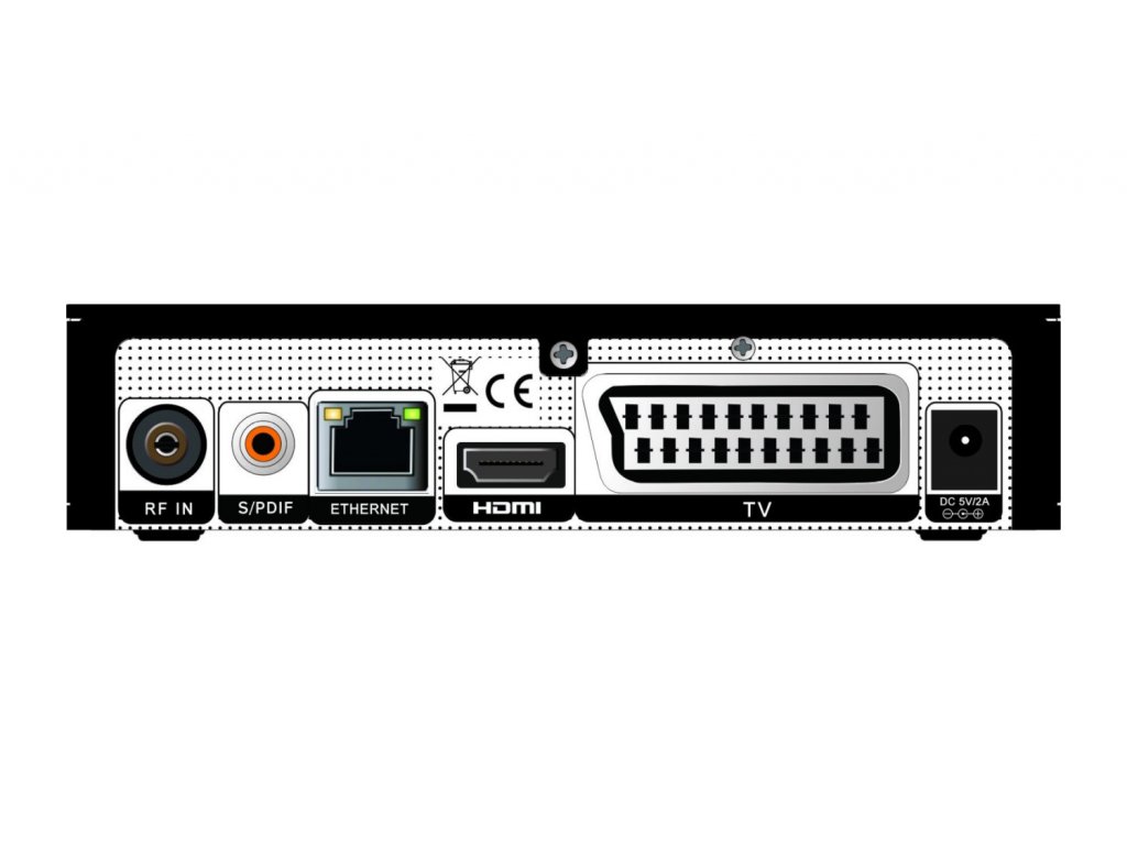 Set-top box pro příjem digitálního pozemního T/T2 vysílání s podporou rozlišení Full HD. Lze použít i pro příjem kabelové TV DVB-C. Vhodný pro příjem nového vysílání s kodekem H.265/HEVC. Přístroj je možné umístit například za TV - díky externímu IR senzoru (není součástí balení) a nálepkám na spodní straně. Nechybí ani možnost nahrávání na externí paměťová zařízení nebo přehrávání běžných audio/video formátů - k dispozici jsou 2 USB porty na boční straně.