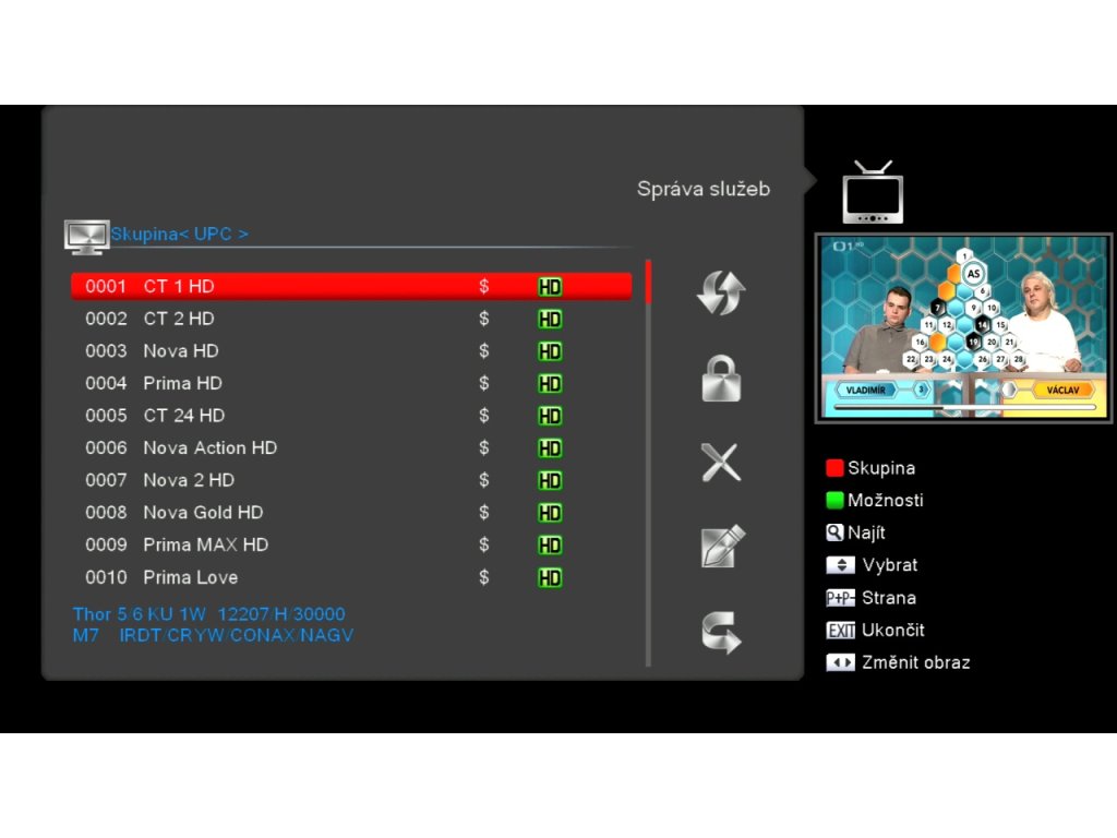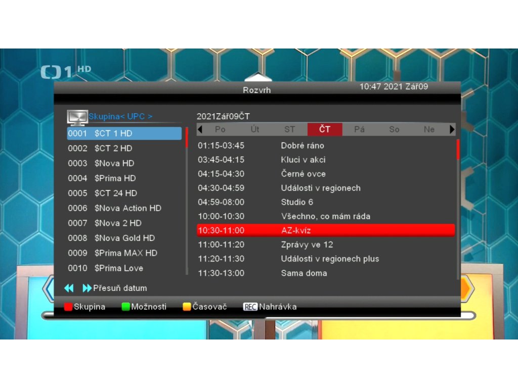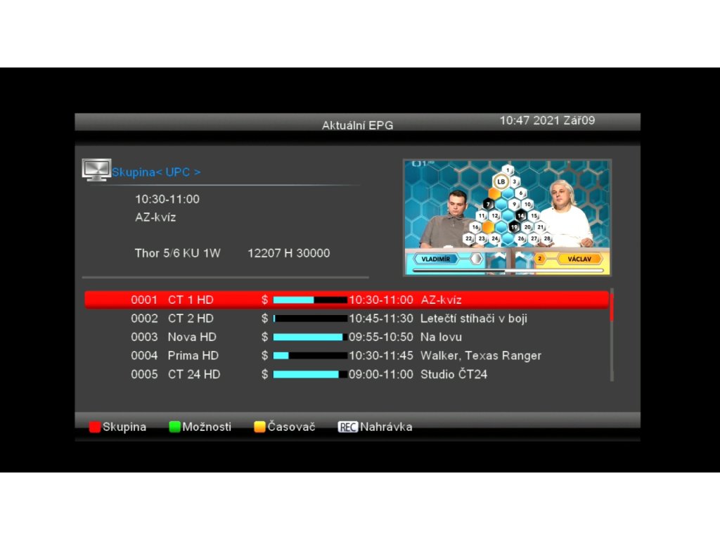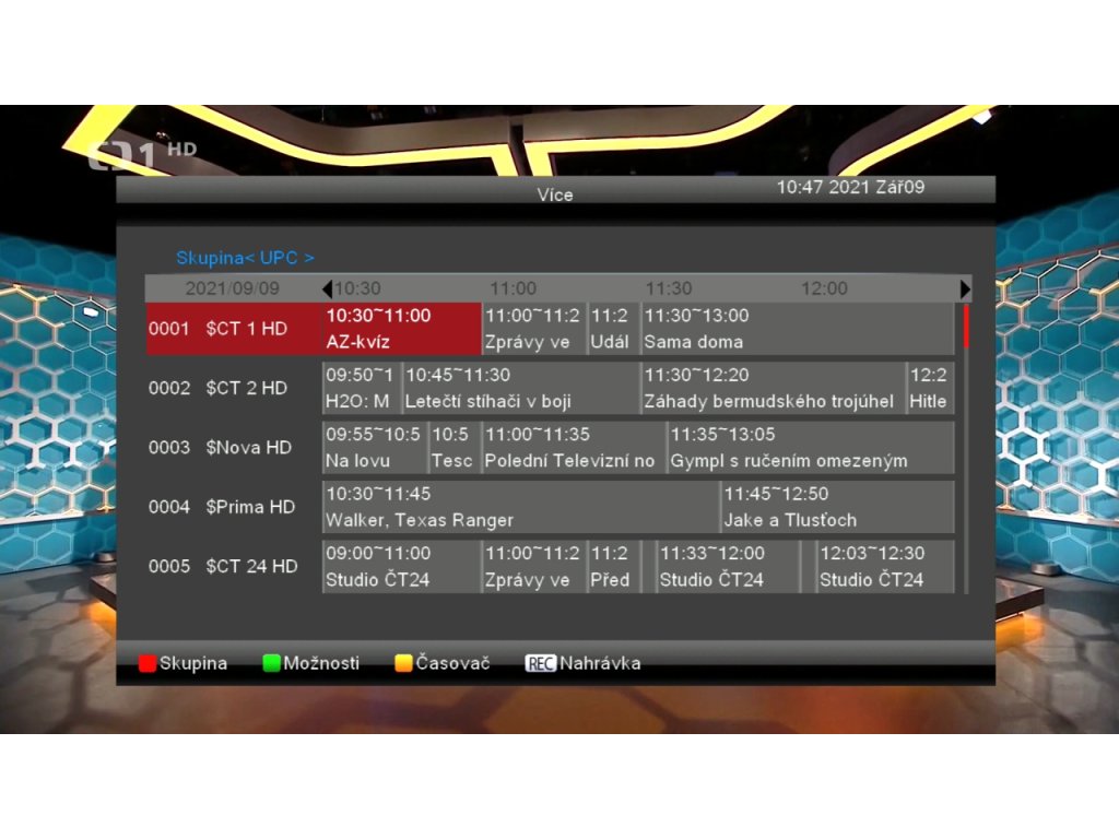 - EPG - programový průvodce se 4 možnostmi zobrazení: aktuální pořad, následující pořad, časová linka, rozvrh vybraného programu