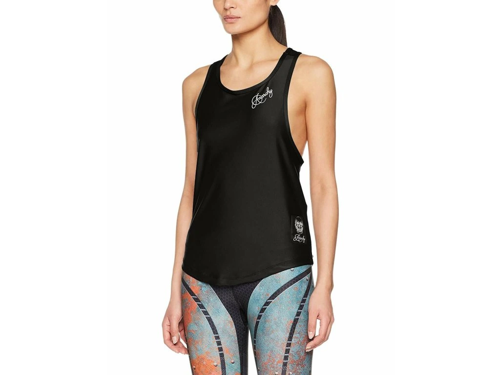 Kvalitné dámske športové tričko Anarchy Apparel Tank Top Cranium Black, vyrobené z pružného tenkého a ľahkého materiálu - 87% polyesteru/Lycra a 13% spandexu. Perte na 40 stupňov. Sú navrhnuté, aby neobmedzovali pri cvičení.