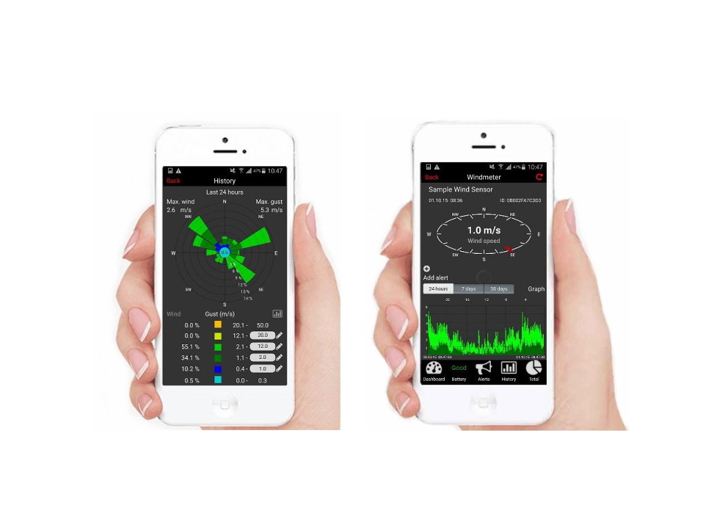 Anemometer MA10660 je ďalším zariadením v systéme domáceho monitorovania Mobile-Alerts, ktoré umožňuje okamžité monitorovanie rýchlosti a smeru vetra prostredníctvom mobilnej aplikácie. - aplikácia zobrazuje zrážky za poslednú hodinu, 24 hodín, 7 dní a 30 dní - 18 mesiacov histórie ukladania údajov a možnosť prenosu údajov na ďalšie spracovanie, široká škála štatistík - 21 meraní za 7 minút - prenos údajov každých 7 minút, (rýchlosť a smer vetra, priemerná rýchlosť vetra, náraz vetra, prevládajúci smer vetra) - meranie rýchlosti vetra od 0 do 50 m/s (0 až 180 km/h) - napájanie zo zabudovaných dobíjacích batérií a solárneho panelu Na prevádzku anemometra je potrebná brána model MA10000 a mobilná aplikácia. Obsah balenia: - anemometer - 2 montážne diely - 2 objímky v tvare U - 2 uťahovacie pásky - 2 matice - 2 podložky - karta s QR kódom Parametre: - Určené pre model: domáci monitorovací systém Mobile-Alerts - Rozsah/tolerancia merania rýchlosti vetra: 0 až 50 m/s (0 až 180 km/h). 5 % +/-0,5 m/s - Meranie smeru vetra: 16 smerov - Rozlíšenie merania smeru vetra: 22,5 - Prenosová frekvencia: 868 MHz - Dosah signálu bezdrôtového snímača: 100 m v otvorenom priestore - Interval prenosu údajov: 7 minút - Napájanie: solárny panel so zabudovanými dobíjacími batériami - Celkové rozmery: 298 x 180 x 200 mm - Hmotnosť: 762 g - Farba: biela - Možné umiestnenie / zavesenie: montáž na vertikálnu alebo horizontálnu rúruDodatočné parametre