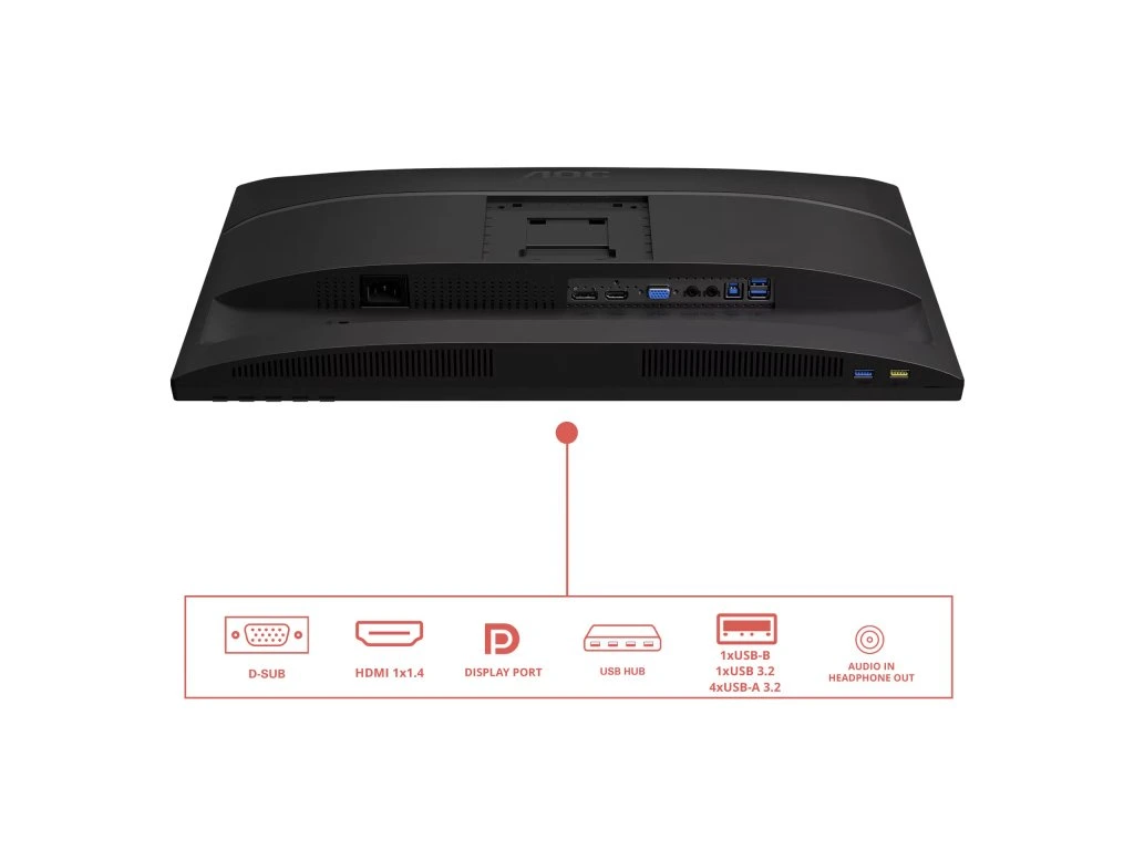 AOC X24E4U *HDR Mode *Adaptive Sync *Flicker Free *TUV Eye Comfort *TCO Certified *Kensington Lock Typ obrazovky: ,IPS Podsvícení: ,WLED Úhlopříčka [palce]: ,24 Rozlišení: ,1 920 x 1 200 Rozteč bodu [mm]: ,0.27 Obnovovací frekvence [Hz]: ,100 Poměr stran: ,16:10 Povrch displeje: ,Antireflexní Jas [cd/m2]: ,300 Kontrast: ,1 500:1 Odezva [ms]: ,4 Pozorovací úhly (Horizontál/Vertikál): ,178/178 Počet barev: ,16,7 M. Reproduktory: ,2x 2W Konektory: , *1x HDMI 1.4 *1x VGA *1x DisplayPort *4x USB-A *1x USB-B *1x ,Headphone out (3.5mm), Audio in Napájení: ,interní Spotřeba [W]: ,15,5 Stand By režim [W]: ,0,3 Třída energetické náročnosti: ,B Montáž na zeď: ,VESA 100x100 Naklápění monitoru: , *Naklonění: -5°/30° *Pivot: -90°/90° *Natočení: -180°/180° *Výškově nastavitelné:150mm Barva: ,Černá Rozměry (se stojanem, ŠxVxH mm): ,533.2 x 381.5~531.4 × 219.4 Rozměry (bez stojanu, ŠxVxH mm): ,533.2 x 347.4 × 49.5 Hmotnost [kg]: ,5,22 Obsah balení: , *HDMI kabel *DisplayPort kabel *Napájecí kabel Záruka: ,5 let Stránky výrobce: ,https://aoc.com/si/monitors/x24e4u#compactFeatureHighlighterDodatočné parametre