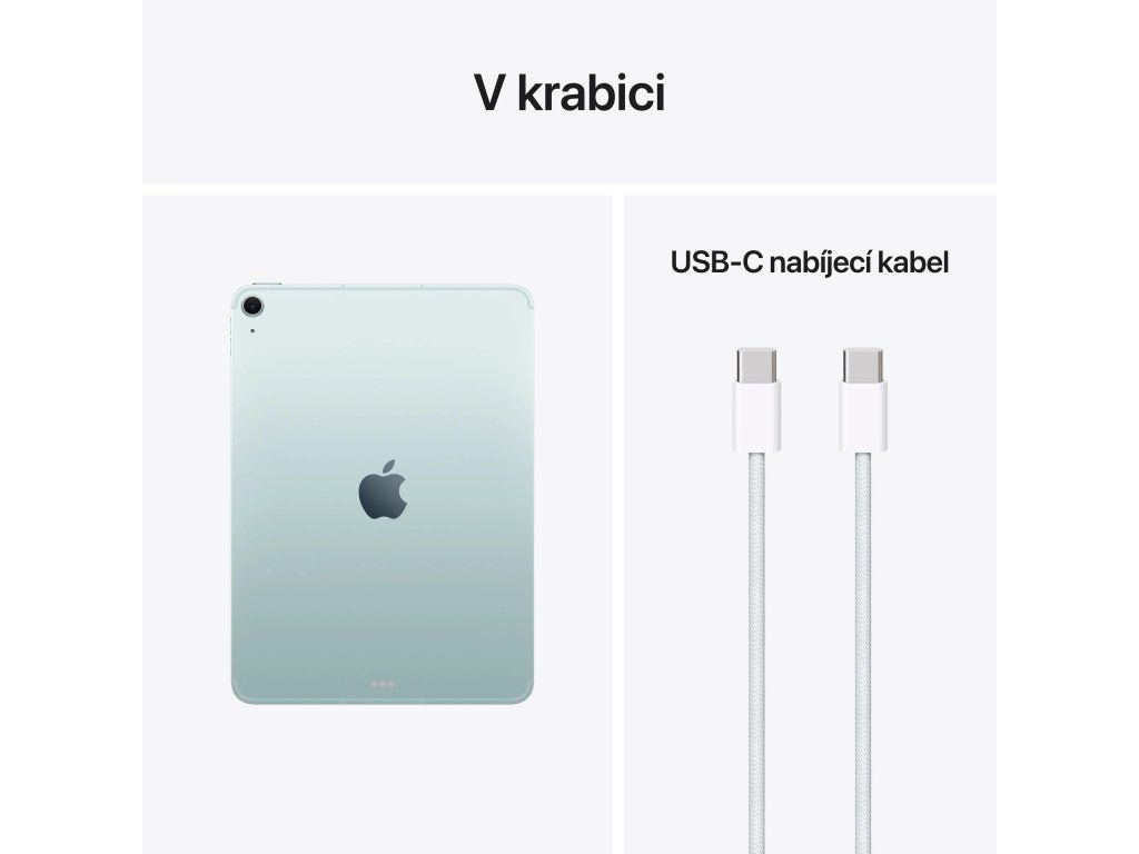 Apple iPad Air 11'' (M4) Wi-Fi + Cellular 128GB *Apple Intelligence Operační systém: iPadOS 26 Procesor: Apple M4, 8 jádrové CPU (3P+5E), 9 jádrové GPU, 16 jádrový Neural Engine Paměť: 12GB Pevný disk: 128GB Čtečka paměťových karet: ne Displej: 10,86'' Liquid Retina Multi-Touch displej s LED podsvícením a technologií IPS, 2360x1640 při 264ppi, 500 nitů, antireflexní, oleofobní úprava proti šmouhám, True Tone Audio: stereo reproduktory v orientaci na šířku, FaceTime audio, 2x mikrofon Zadní fotoaparát: *12MP širokoúhlý, f/1,8, pětičlenný objektiv, až 5× digitální zoom, Smart HDR 4, sekvenční režim, HEIF a JPEG *4K video při 24 fps, 25 fps, 30 fps nebo 60 fps, kontinuální autofokus při nahrávání videa, HEVC a H.264, časosběrné video se stabilizací Přední webkamera: *12MP Center Stage na šířku, f/2,0, Smart HDR 4 *1080p HD video při 25 fps, 30 fps nebo 60 fps, Retina Flash s True Tone, sekvenční režim, FaceTime Senzory: *Touch ID *tříosý gyroskop *akcelerometr *barometr *snímač okolního osvětlení Určování polohy: *digitální kompas *Wi-Fi *mikrolokalizace iBeacon *GPS/GNSS *mobilní data Bezdrátová komunikace: Wi-Fi 7 (802.11be) s technologií 2×2 MIMO + Bluetooth 6 + 5G (pásma sub-6 GHz) s technologií MIMO 4×4, gigabitové LTE s technologií MIMO 4×4, mobilní modem Apple C1X Porty: *1x USB-C (až 10 Gb/s), nabíjení, DisplayPort *1x magnetický konektor *1x smart konektor Baterie: vestavěná lithium-polymerová baterie s kapacitou 28,93Wh Výdrž baterie: až 10 hodin/až 9 hodin v mobilní datové síti Barva: modrá Rozměry: 247,6x178,5x6,1mm Hmotnost: 465g V krabici: *iPad Air *USB-C nabíjecí kabel (1m)Dodatočné parametre