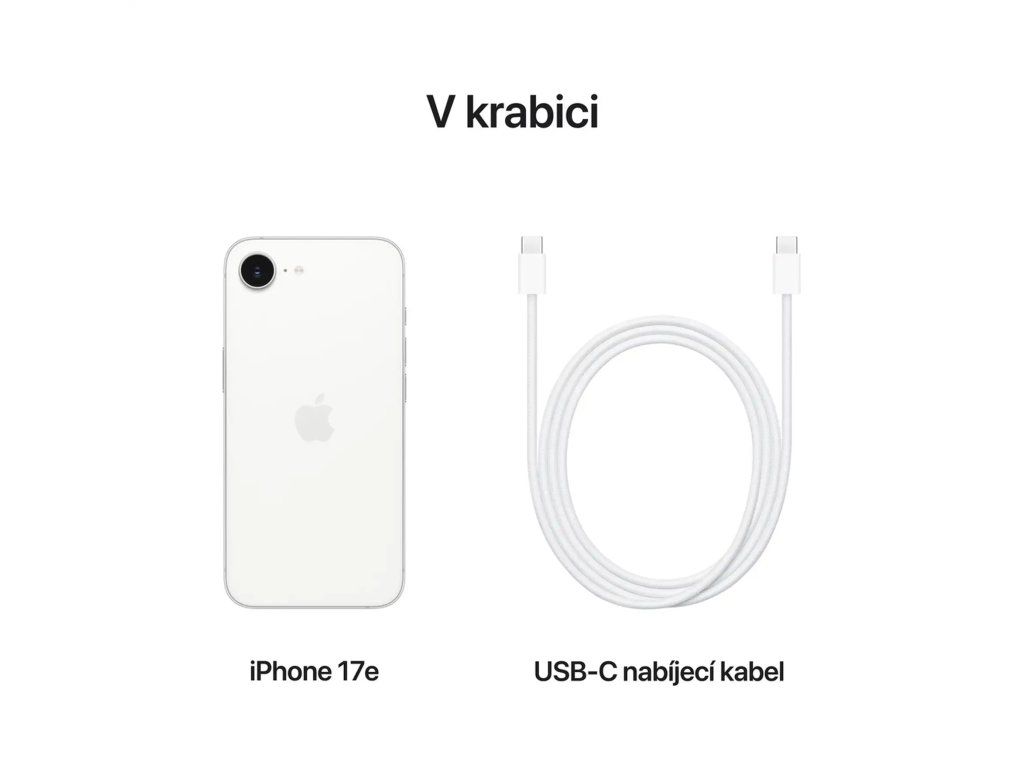 Apple iPhone 17e 256GB bílý *tísňové SOS volání *detekce autonehody *až 26 hodin přehrávání videa Operační systém: iOS 26 Procesor: čip A19 (6jádrové CPU se 2 výkonnostními a 4 úspornými jádry, 4jádrové GPU s Neural Acceleratory, 16jádrový Neural Engine) Kapacita úložiště: 256GB Konstrukce: *hliník *Ceramic Shield 2 na přední straně *skleněná zadní strana Displej: 6,1” Super Retina XDR (OLED, 2532×1170 při 460 ppi) *HDR *True Tone *široký barevný rozsah (P3) *Haptic Touch *kontrastní poměr (typický) 2000000:1 *maximální jas (typický) 800 nitů, špičkový jas (HDR) 1200 nitů *oleofobní úprava proti šmouhám *antireflexní vrstva *podpora současného zobrazení více jazyků a znaků Stupeň krytí: IP68 (až 30 minut v hloubce do 6 metrů) Fotoaparát: zadní *48Mpx hlavní Fusion fotoaparát: 26 mm, clona f/1,6, optická stabilizace obrazu s posuvem snímače, 100% Focus Pixels, fotky v supervysokém rozlišení (24 Mpx a 48 Mpx) *podpora 12Mpx 2× přiblížení v optické kvalitě: 52 mm, clona f/1,6, optická stabilizace obrazu Habrid Focus Pixels *až 10× digitální zoom *True Tone blesk *Photonic Engine *Deep Fusion *Smart HDR 5 *noční režim *Panorama (až 63 Mpx) *automatická stabilizace obrazu *sekvenční režim *formáty ukládání fotek: HEIF a JPEG *4K video v Dolby Vision při 24 fps, 25 fps, 30 fps nebo 60 fps *časosběrné video se stabilizací, časosběrné video v nočním režimu *pořizování 8Mpx fotek při nahrávání 4K videa *formáty ukládání videa: HEVC a H.264 *prostorový zvuk a stereo nahrávání *redukce hluku způsobeného větrem *Audio mix přední *12Mpx TrueDepth fotoaparát *Clona f/1,9 *automatické zaostřování technologií Focus Pixels *Retina Flash *portrétní nasvícení se šesti efekty *animoji a memoji *zoom klepnutím Senzory: *Face ID *barometr *gyroskop s vysokým dynamickým rozsahem *akcelerometr snímající vysoké přetížení *snímač blízkosti *dva snímače okolního osvětlení Mobilní a bezdrátová rozhraní: *5G (pásma sub-6 GHz) s technologií MIMO 4×4 *gigabitové LTE *Wi-Fi 6 *Bluetooth 5.3 *NFC s režimem čtečky *expresní karty s energetickou rezervou Určování polohy: *GPS, GLONASS, Galileo, QZSS, BeiDou a NavIC *digitální kompas *Wi-Fi *mobilní síť *mikrolokalizace iBeacon SIM karta: podpora dvou SIM (dvě aktivní eSIM nebo nano SIM a eSIM) Konektivita: USB-C konektor s podporou pro: nabíjení, USB 2 (až 480 Mb/s) Baterie: vestavěná dobíjecí lithium-iontová *bezdrátové nabíjení MagSafe (až 15 W) *bezdrátové nabíjení Qi2 (až 15 W) *identifikace doplňků pomocí NFC *magnetometr Rozměry: 146,7x71,5x7,8mm Hmotnost: 170 g Obsah balení: *iPhone 17e *USB-C nabíjecí kabel (1m) *dokumentaceDodatočné parametre
