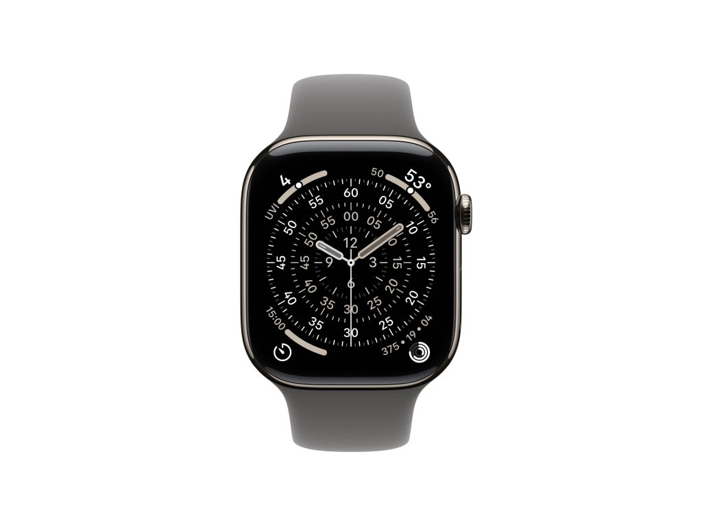 Apple Watch Series 11 Cellular Sport Band přírodní/kamenně šedé M/L * pro zápěstí s obvodem 130–200 mm * korunka Digital Crown s haptickou odezvou * reproduktor/mikrofon Operační systém: watchOS Displej: stále zapnutý LTPO3 OLED Retina, 374×446 pixelů, 989mm2, 326 ppi, 1/2000 nitů Čip: * S10 s 64bitovým dvoujádrovým procesorem * 4jádrový Neural Engine * 64 GB Připojení: * GPS L1, GLONASS, Galileo, QZSS a BeiDou * LTE a UMTS * Wi-Fi 4 (802.11n) * podpora 2,4GHz a 5GHz Wi-Fi sítí * Bluetooth 5.3 * NFC: Apple Pay, GymKit Snímače: * elektrický snímač srdeční činnosti * třetí generace optického snímače srdeční činnosti * saturace kyslíkem * teploty * hloubkoměr do 6 m * teploty vody * kompas * stále aktivní výškoměr * akcelerometr snímající vysoké přetížení * gyroskop s vysokým dynamickým rozsahem * okolního osvětlení Voděodolnost: do 50 m (pro plavání) Odolnost proti prachu: IP6X Funkce: * aplikace Saturace kyslíkem * aplikace EKG * aplikace Sledování cyklu se zpětným odhadem doby ovulace * aplikace Srdeční tep * oznámení o vysoké a nízké tepové frekvenci * oznámení o nepravidelném srdečním rytmu * aplikace Léky * aplikace Všímavost se zaznamenáváním stavu mysli * aplikace Hluk * aplikace Spánek se sledováním fází spánku * spánkové skóre * upozorňování na spánkovou apnoi * oznámení o hypertenzi * tíseň SOS * mezinárodní tísňové volání * detekce autonehody * detekce pádu * monitorování hluku Kompatibilita: iPhone 11 a novější, včetně iPhonu SE (2. generace a novější) s iOS 26 nebo novějším Napájení: vestavěná dobíjecí lithium-iontová, podpora rychlonabíjení, až 24 hodin běžného používání Materiál pouzdra: titan Rozměry: 42x36x9,7mm Hmotnost: 34,6g Obsah balení: * Apple Watch Series 11 * řemínek * magnetická rychlonabíječka Apple Watch s USB-C kabelem (1m)Dodatočné parametre