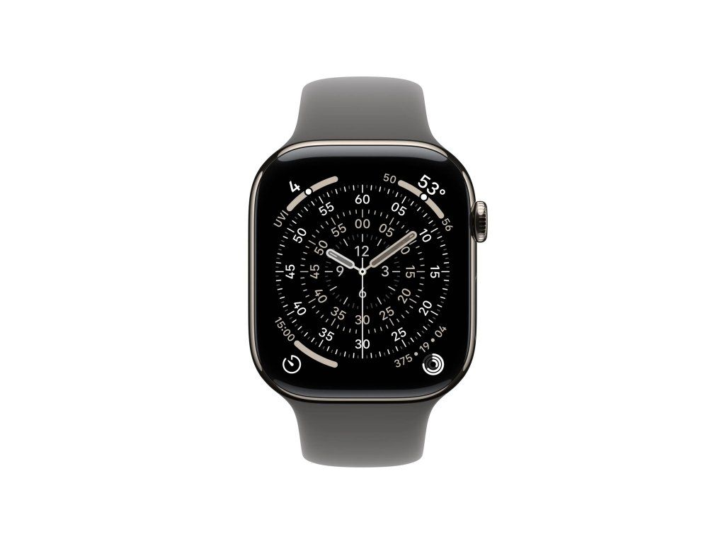 Apple Watch Series 11 Cellular Sport Band přírodní/kamenně šedé S/M * pro zápěstí s obvodem 130–200 mm * korunka Digital Crown s haptickou odezvou * reproduktor/mikrofon Operační systém: watchOS Displej: stále zapnutý LTPO3 OLED Retina, 374×446 pixelů, 989mm2, 326 ppi, 1/2000 nitů Čip: * S10 s 64bitovým dvoujádrovým procesorem * 4jádrový Neural Engine * 64 GB Připojení: * GPS L1, GLONASS, Galileo, QZSS a BeiDou * LTE a UMTS * Wi-Fi 4 (802.11n) * podpora 2,4GHz a 5GHz Wi-Fi sítí * Bluetooth 5.3 * NFC: Apple Pay, GymKit Snímače: * elektrický snímač srdeční činnosti * třetí generace optického snímače srdeční činnosti * saturace kyslíkem * teploty * hloubkoměr do 6 m * teploty vody * kompas * stále aktivní výškoměr * akcelerometr snímající vysoké přetížení * gyroskop s vysokým dynamickým rozsahem * okolního osvětlení Voděodolnost: do 50 m (pro plavání) Odolnost proti prachu: IP6X Funkce: * aplikace Saturace kyslíkem * aplikace EKG * aplikace Sledování cyklu se zpětným odhadem doby ovulace * aplikace Srdeční tep * oznámení o vysoké a nízké tepové frekvenci * oznámení o nepravidelném srdečním rytmu * aplikace Léky * aplikace Všímavost se zaznamenáváním stavu mysli * aplikace Hluk * aplikace Spánek se sledováním fází spánku * spánkové skóre * upozorňování na spánkovou apnoi * oznámení o hypertenzi * tíseň SOS * mezinárodní tísňové volání * detekce autonehody * detekce pádu * monitorování hluku Kompatibilita: iPhone 11 a novější, včetně iPhonu SE (2. generace a novější) s iOS 26 nebo novějším Napájení: vestavěná dobíjecí lithium-iontová, podpora rychlonabíjení, až 24 hodin běžného používání Materiál pouzdra: titan Rozměry: 42x36x9,7mm Hmotnost: 34,6g Obsah balení: * Apple Watch Series 11 * řemínek * magnetická rychlonabíječka Apple Watch s USB-C kabelem (1m)Dodatočné parametre
